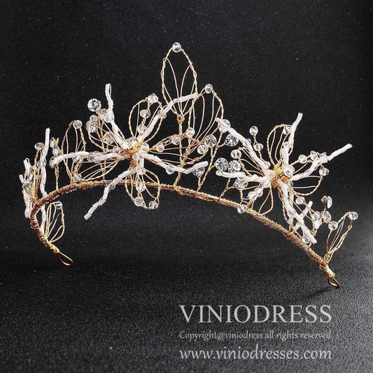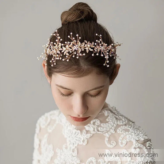 <transcy>Diadema de novia dorada con vestido de vinilo de flores diminutas ACC1093</transcy>