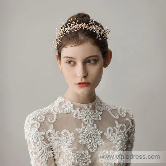 <transcy>Diadema de pan de oro con perlas Viniodress ACC1116</transcy>