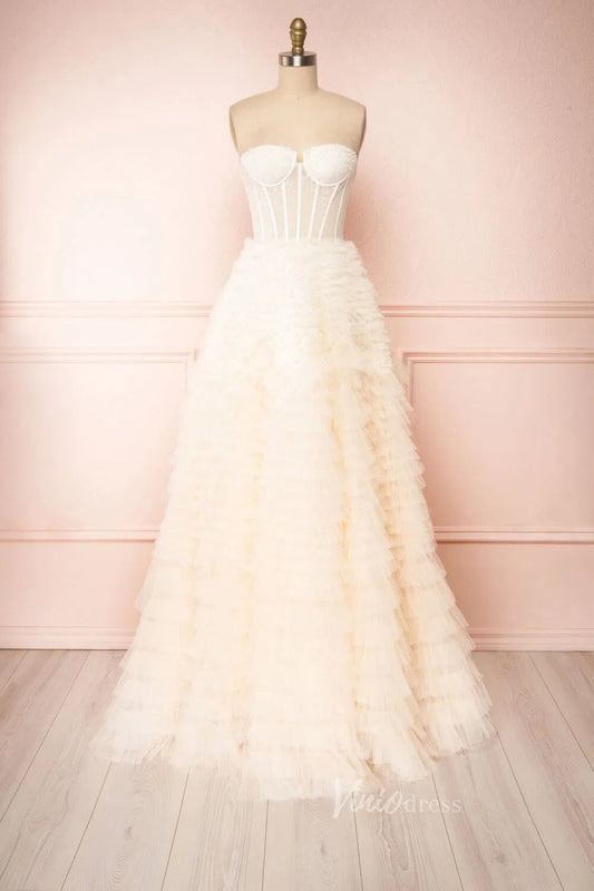 <transcy>Vestidos de fiesta de tul con cuentas de manga larga Vestido formal de una línea con cuello en V FD2381</transcy>