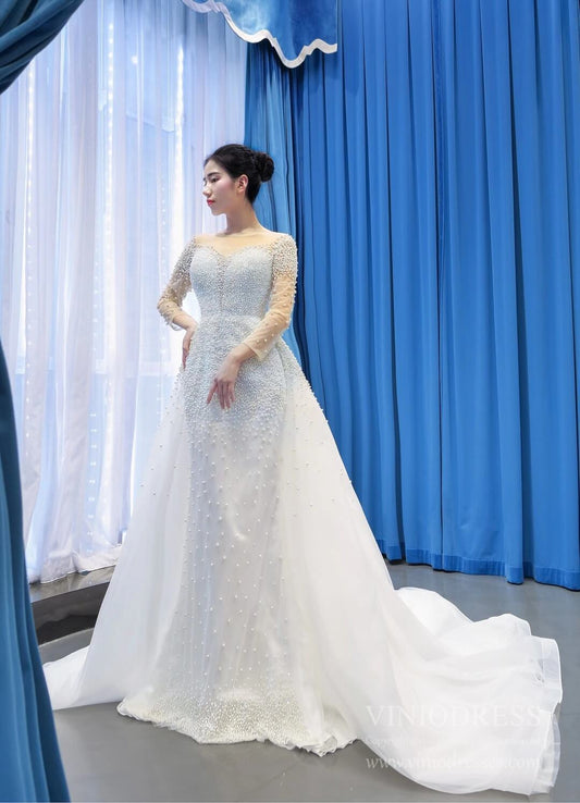 <transcy>Vestidos de novia de alta costura con perlas moldeadas y mangas largas VW1783</transcy>