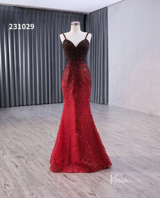 Vestido de novia rojo con cuentas y ombré, con sobrefalda extraíble y tirantes finos, vestido de desfile 231029