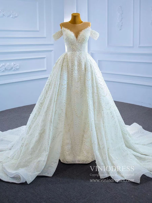Vestidos de novia de perlas de lujo con mangas extraíbles VW2028