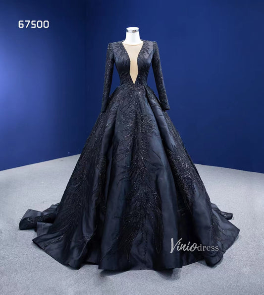 Vestido de fiesta modesto con cuello alto y manga larga, vestidos formales 67530
