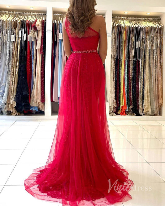 <transcy>Vestidos de fiesta largos atractivos con cuello en V profundo rojo barato FD1374</transcy>