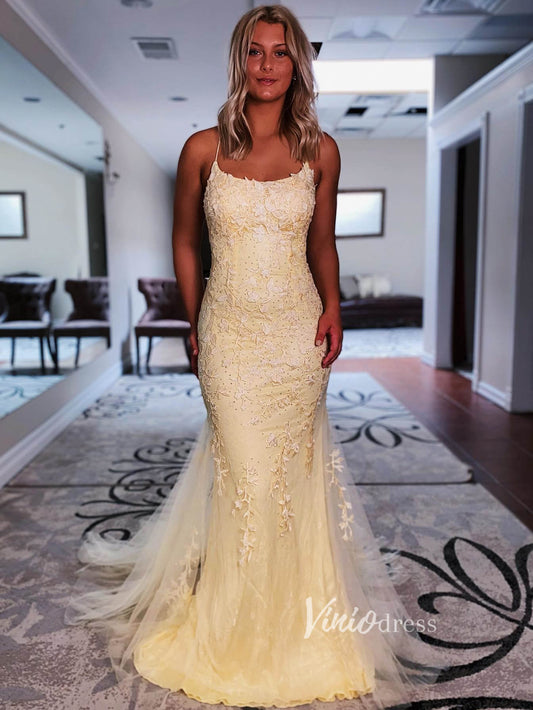 <transcy>Champagne Mermaid Prom Dresses Vestido formal de encaje dorado FD1592</transcy>