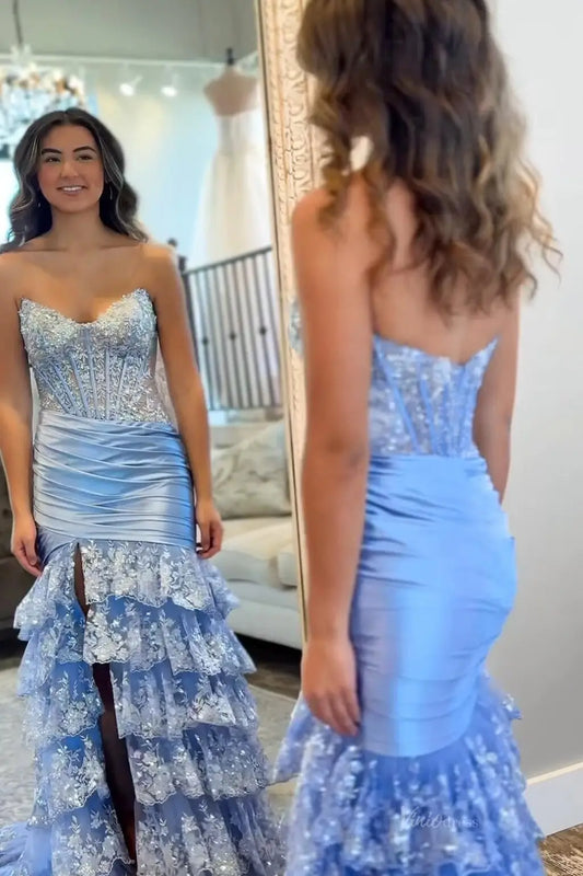 Vestidos de fiesta de satén estilo sirena sin tirantes 2025 con abertura y cuerpo cruzado plisado – FD5040
