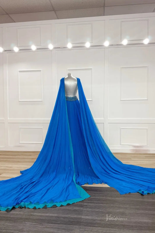 <transcy>Vestido de fiesta azul claro con manga del cabo Vestidos de fiesta largos FD1041</transcy>