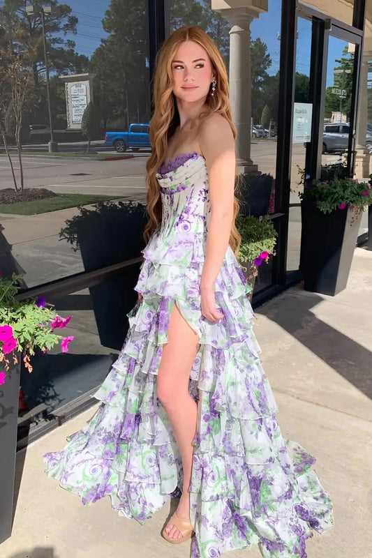 <transcy>Vestidos de fiesta largos con gradas de color malva únicos con cola FD1658</transcy>