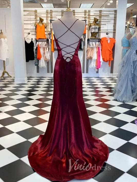 <transcy>Vestidos de fiesta largos de satén con cuello en V y tirantes finos sencillos con abertura lateral FD1359</transcy>