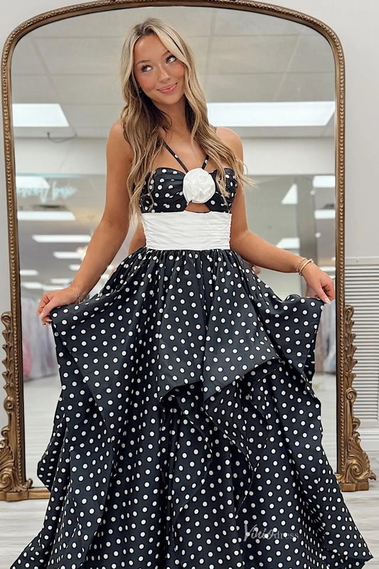 Vestido formal de satén color marfil con hombros descubiertos, flores 3D y bajo escalonado - CQ0120