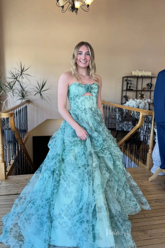 Vestido formal floral verde con hombros descubiertos - CQ0133