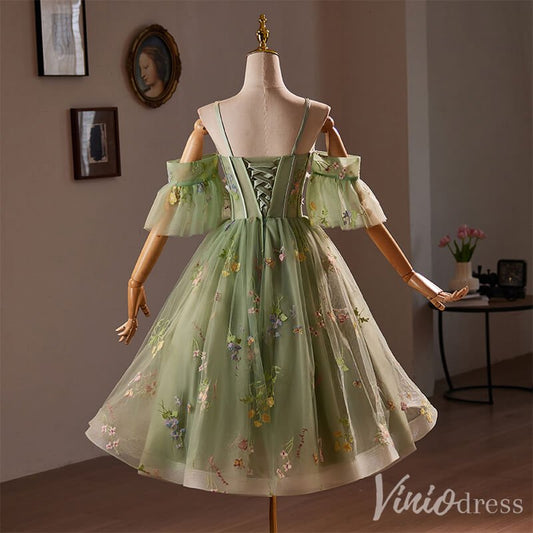 Vestido de fiesta con apliques de encaje verde claro y tirantes finos Hoco 2024 Vestido de regreso a clases 8014