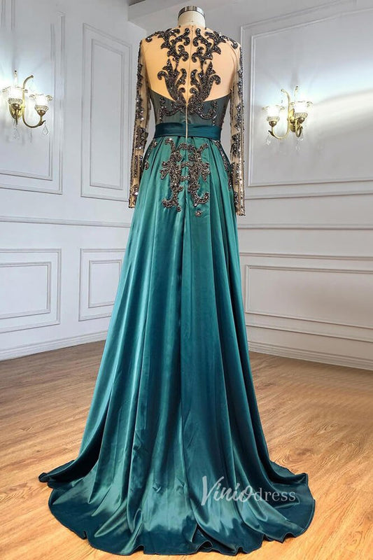 <transcy>Vestido de quinceañera verde esmeralda Vestido de fiesta de princesa de manga larga FD2454</transcy>
