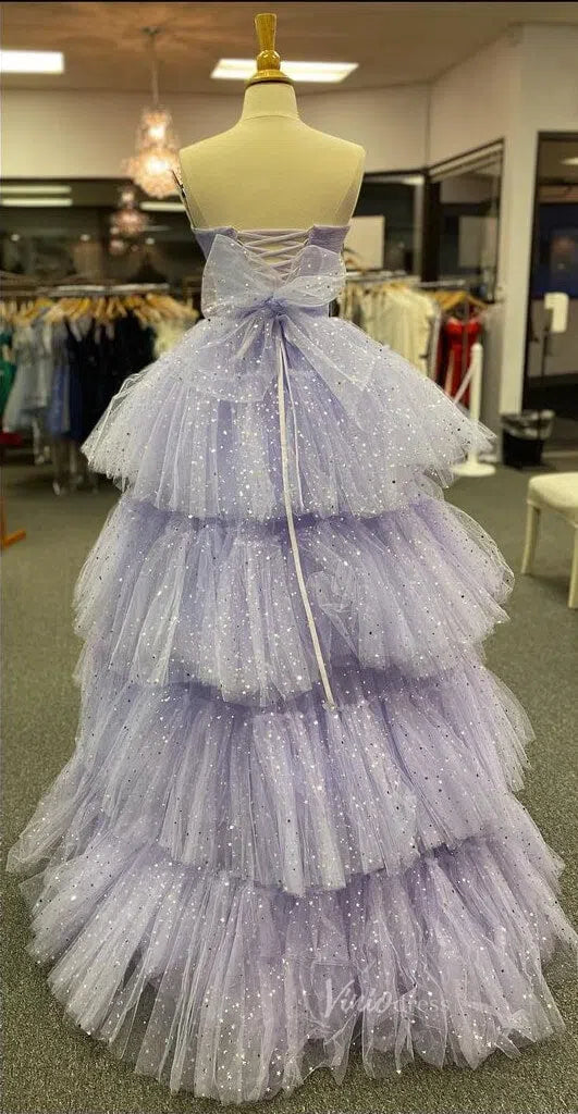 <transcy>Vestidos de fiesta sin tirantes altos y bajos fucsia en capas con cola larga FD2091</transcy>