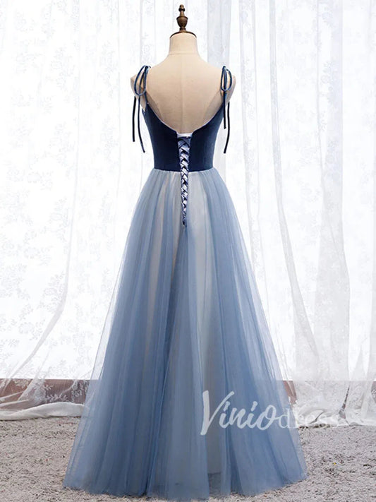 <transcy>Vestidos formales simples azul polvoriento con tirantes FD1486</transcy>