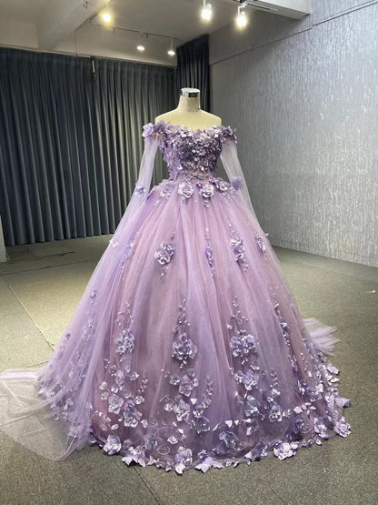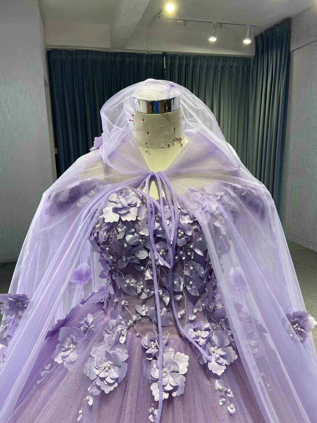 Realza el look de quinceañera de tu pequeña con nuestros vestidos de flores 3D. Las impresionantes flores 3D y el estilo princesa irradian un encanto majestuoso, mientras que la capa con capucha incluida le da un toque moderno. Perfecto para la princesa moderna, este vestido la hará destacar en su día especial.