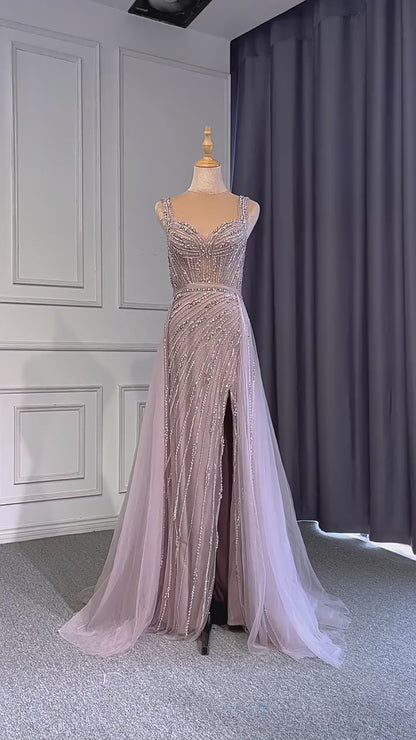 Vestidos de fiesta color malva con cuentas Vestido de noche dorado con falda y abertura 20010
