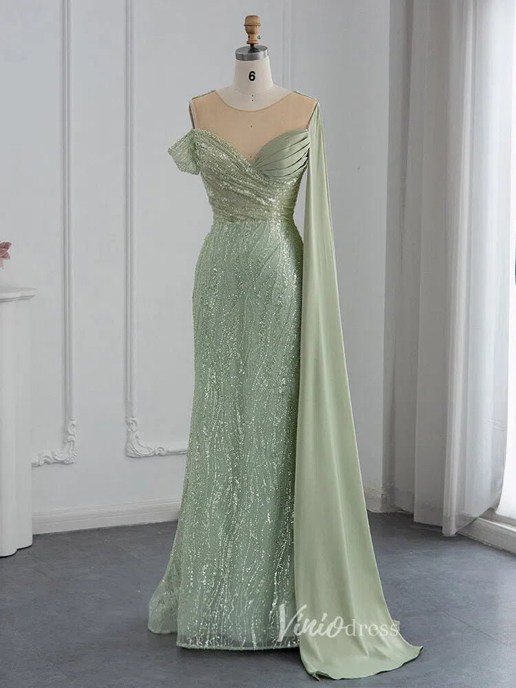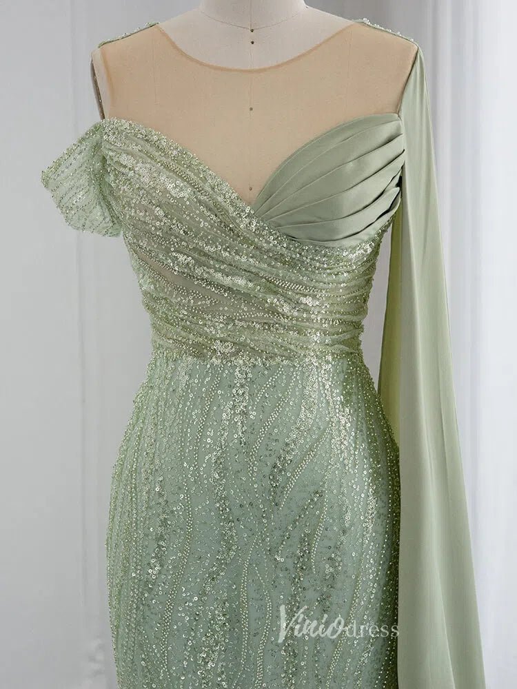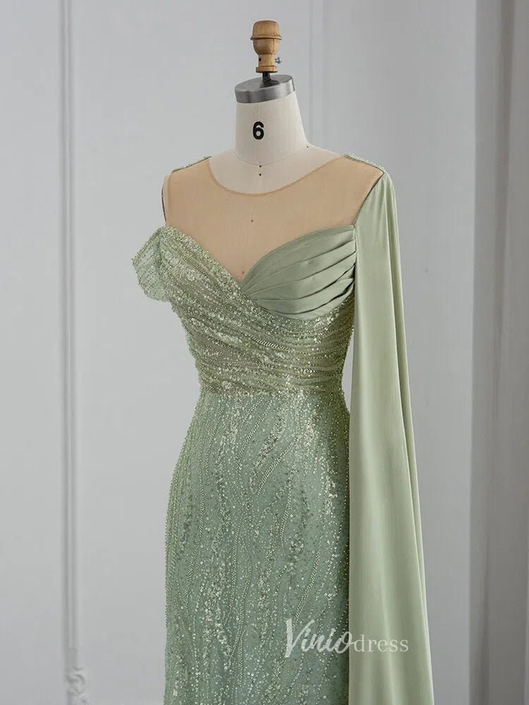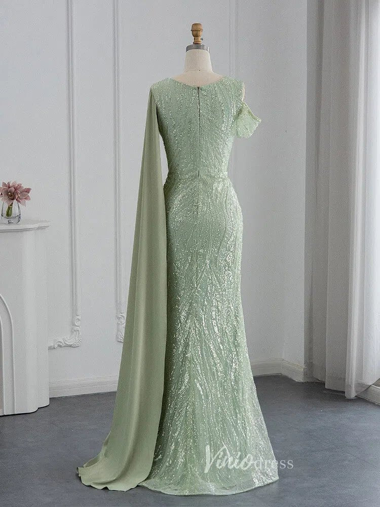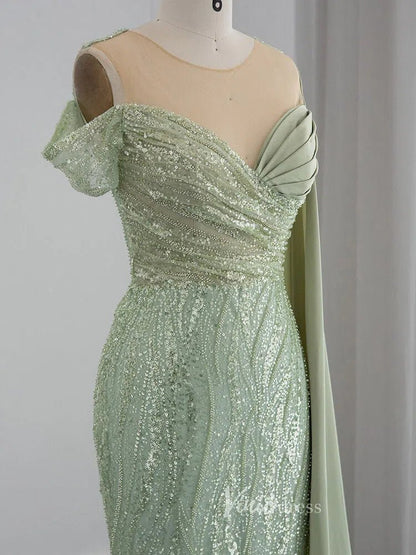 Vestidos de fiesta de color verde salvia con cuentas Watteau Train Vestido de noche de los años 20 20076