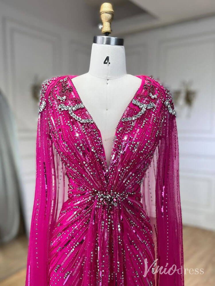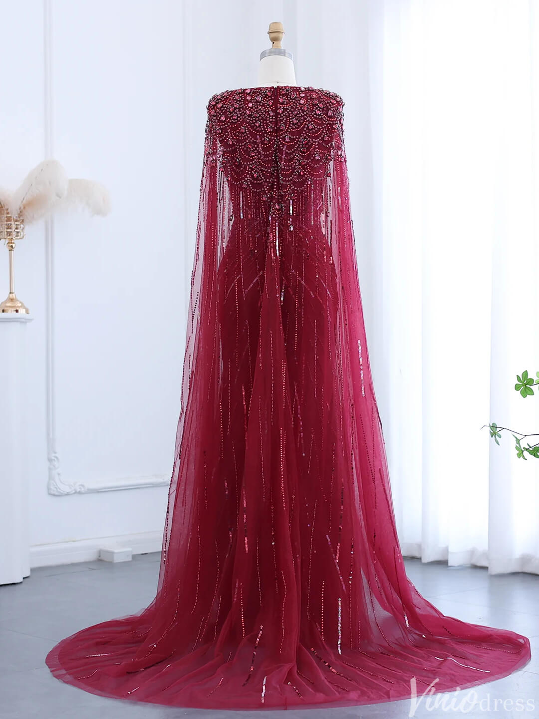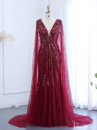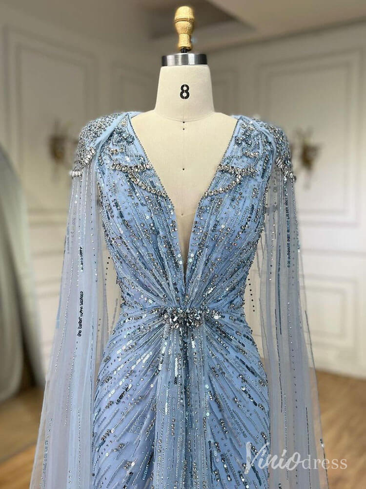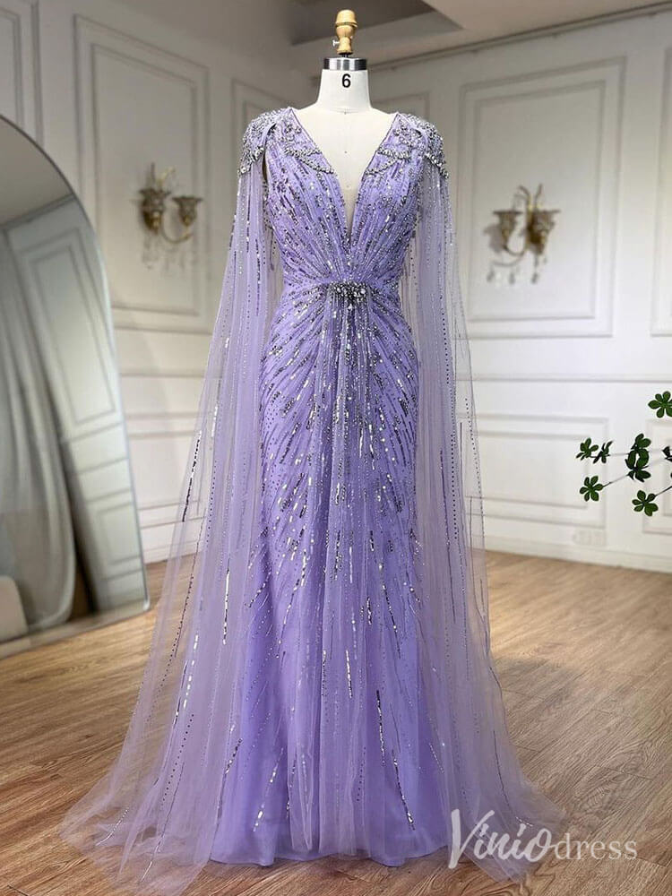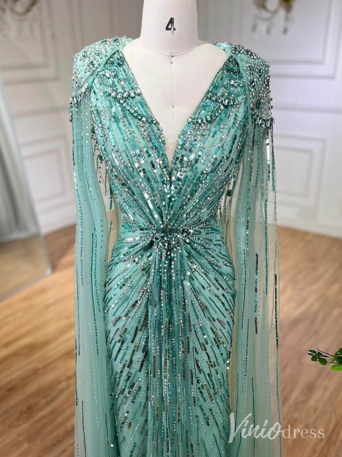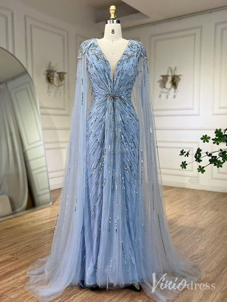 Vestido de fiesta con mangas estilo capa y escote en V con cuentas para invitada de boda AD1258