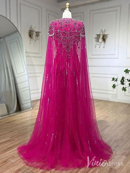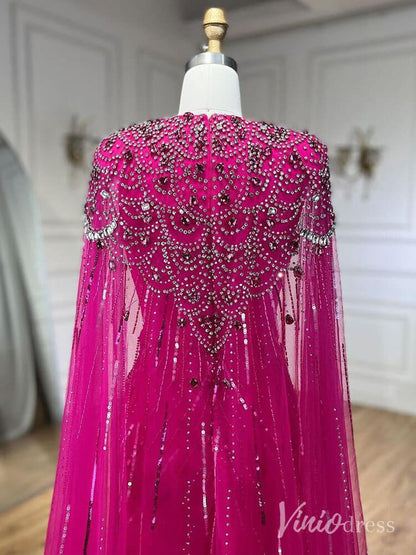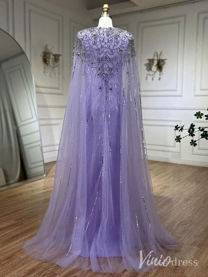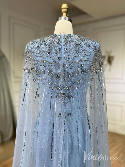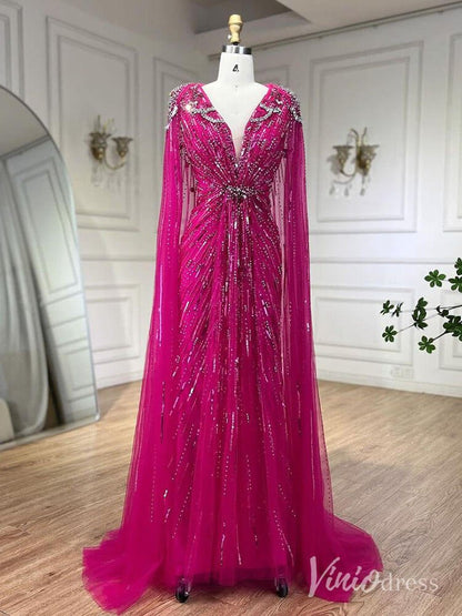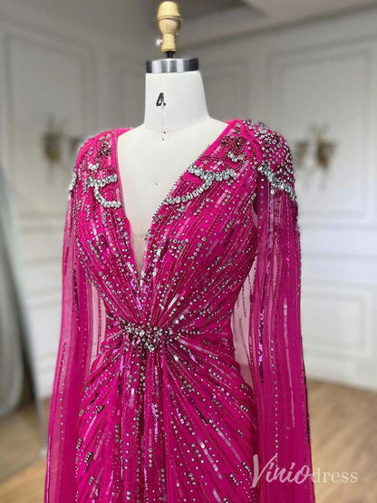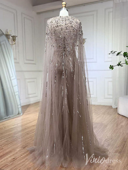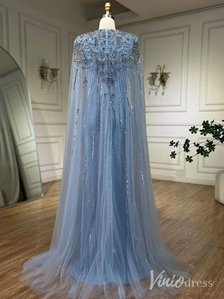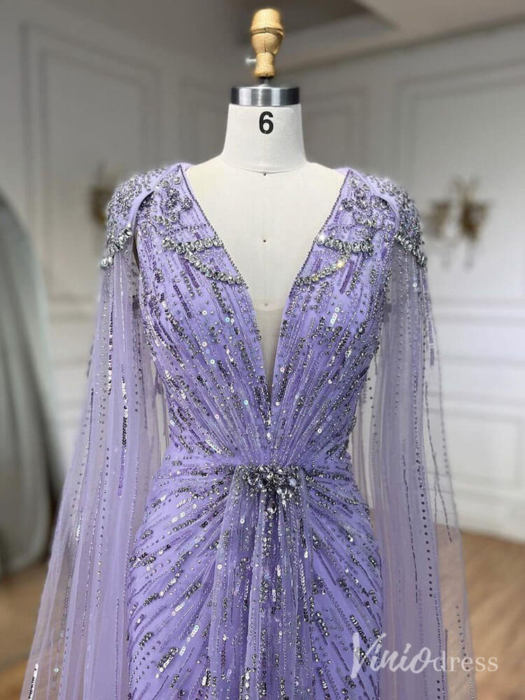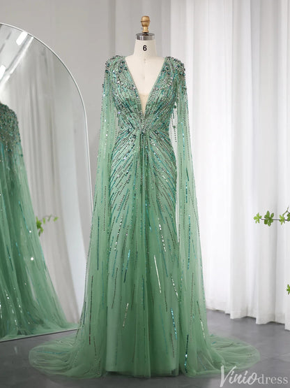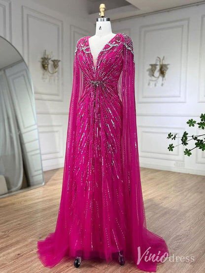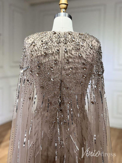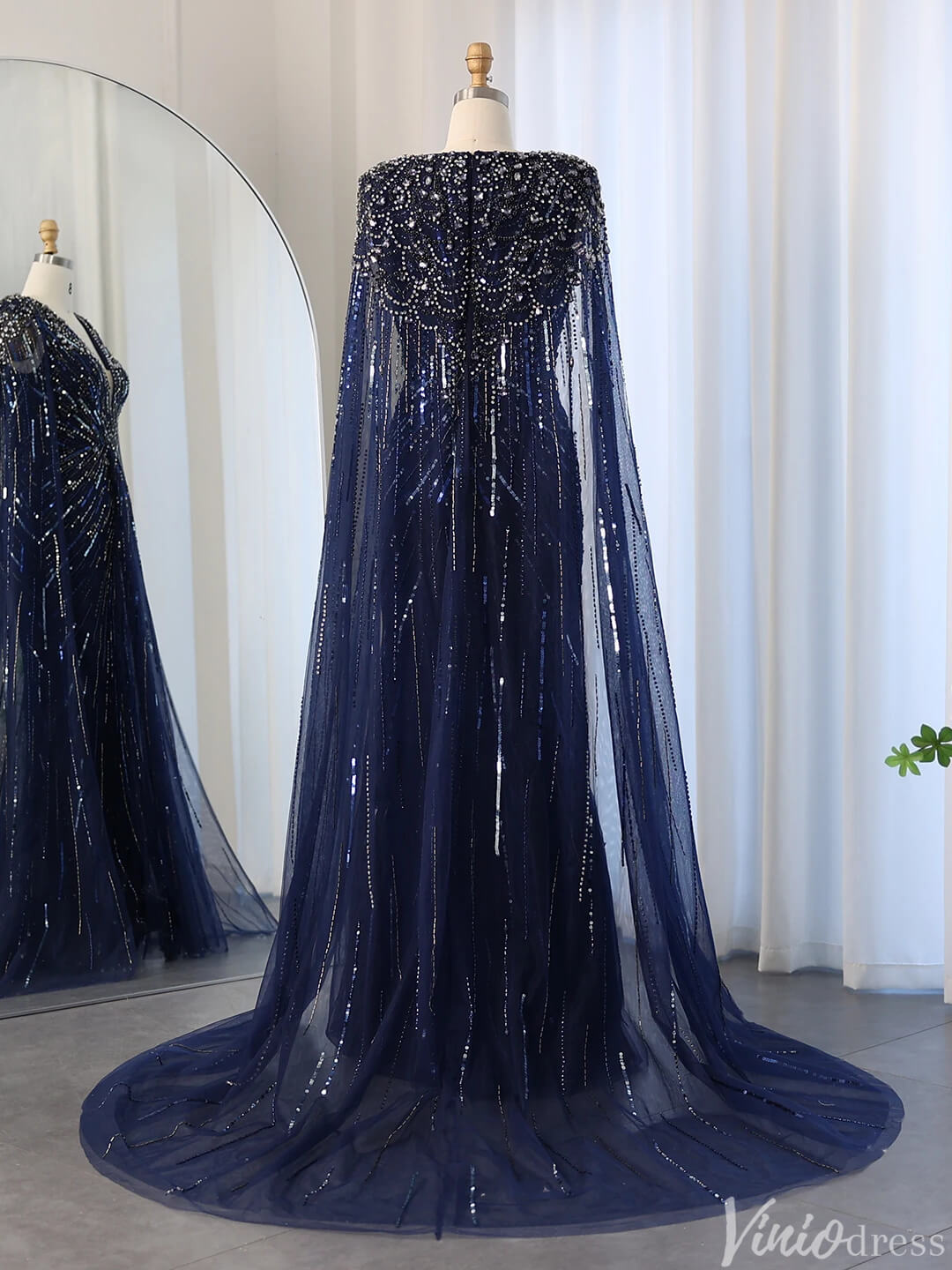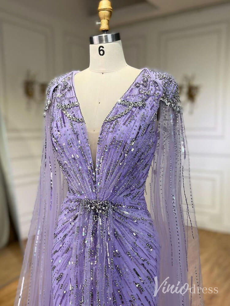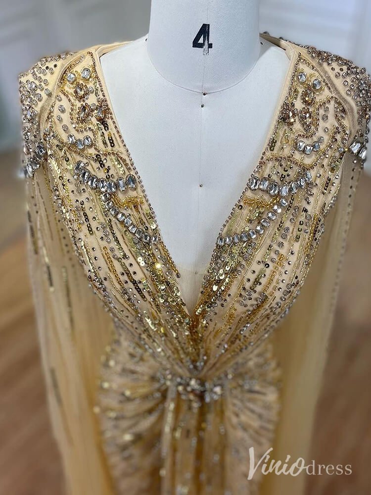 Vestido de fiesta con mangas estilo capa y escote en V con cuentas para invitada de boda AD1258