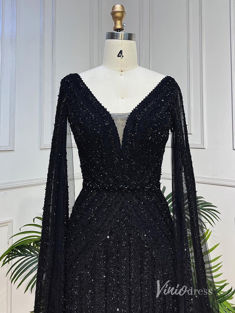 Vestidos de noche con cuentas negras Vestidos para madre de la novia de manga extra larga AD1123