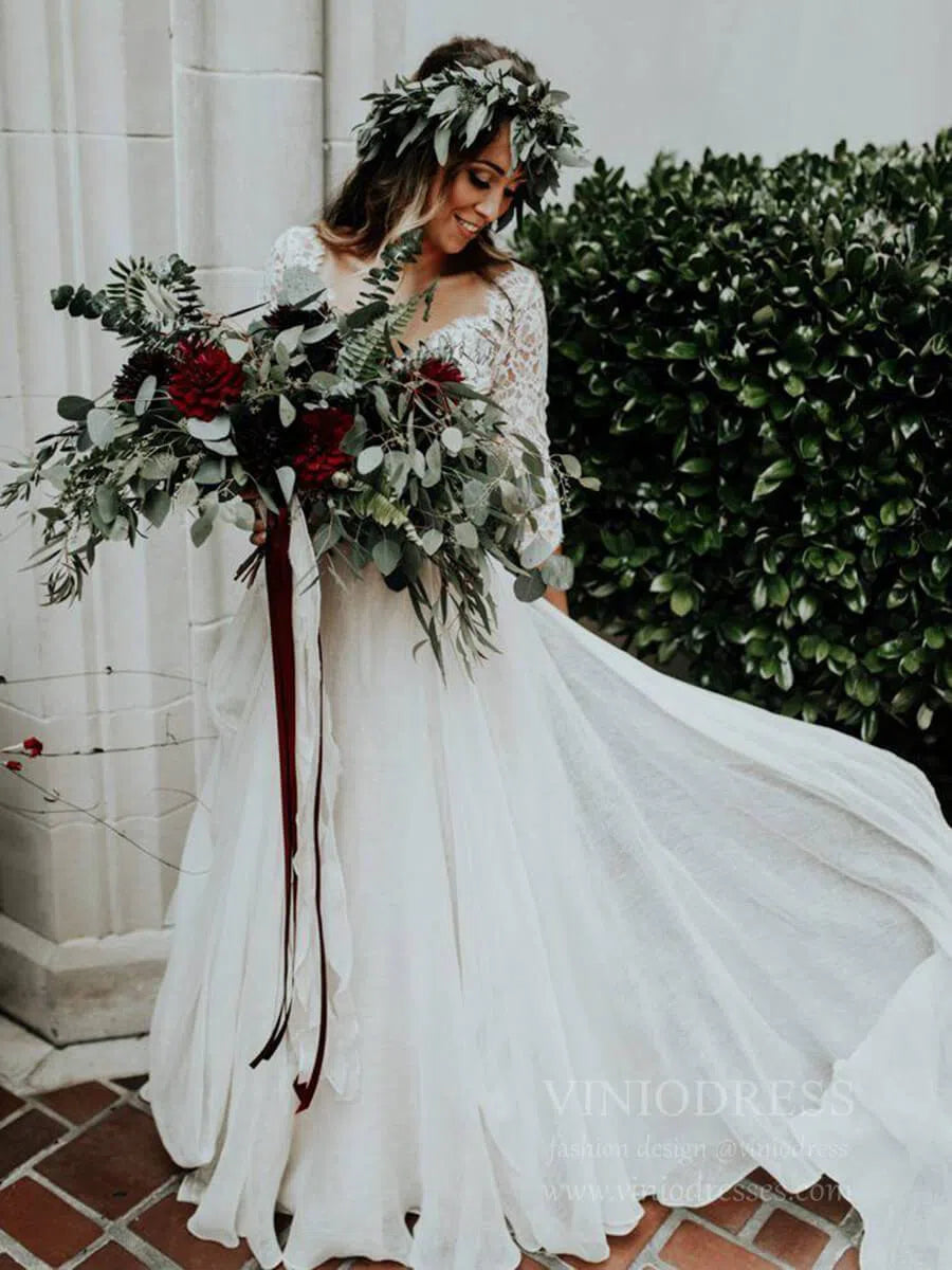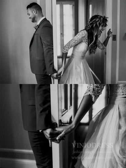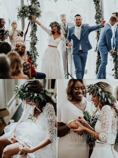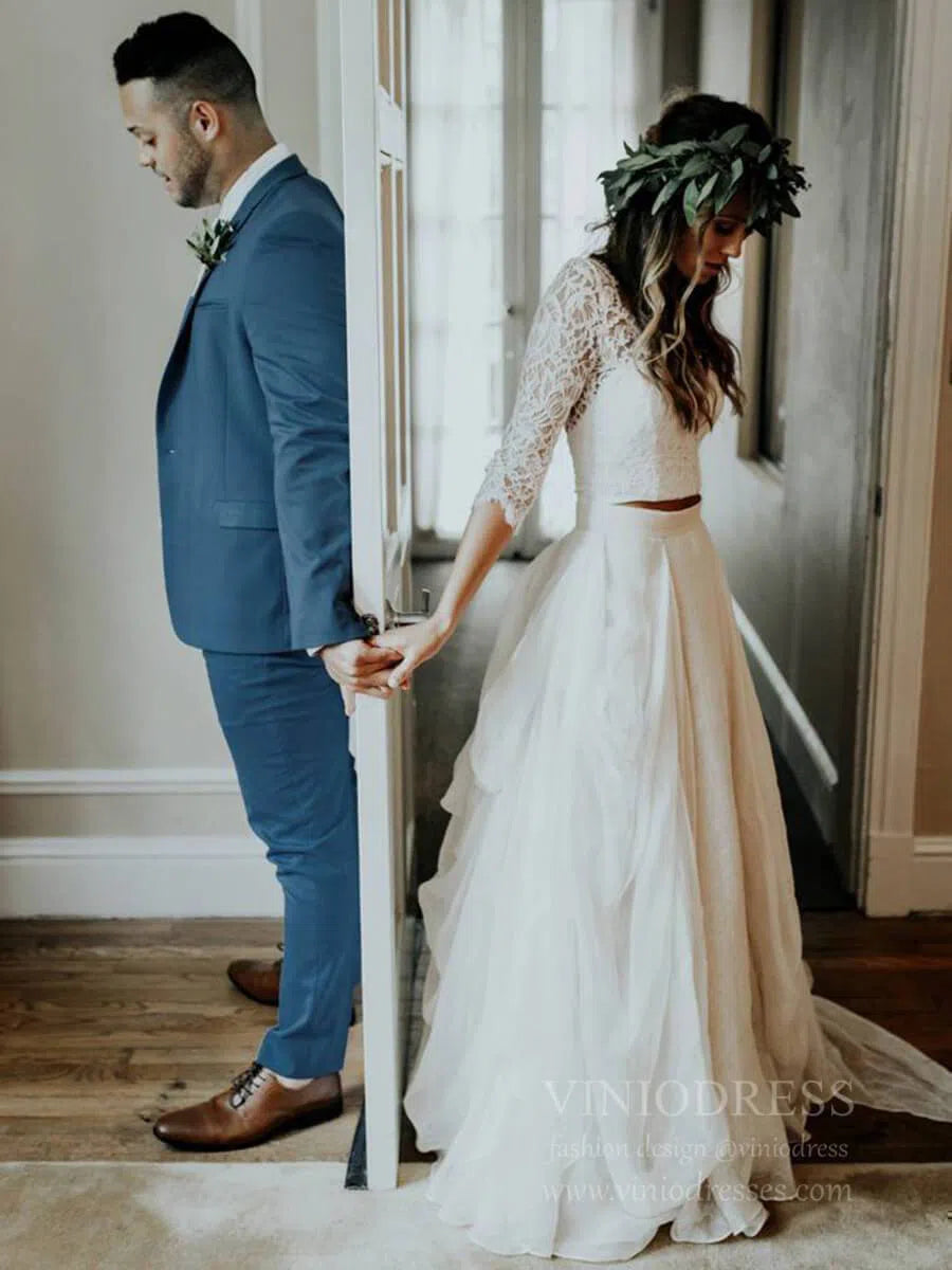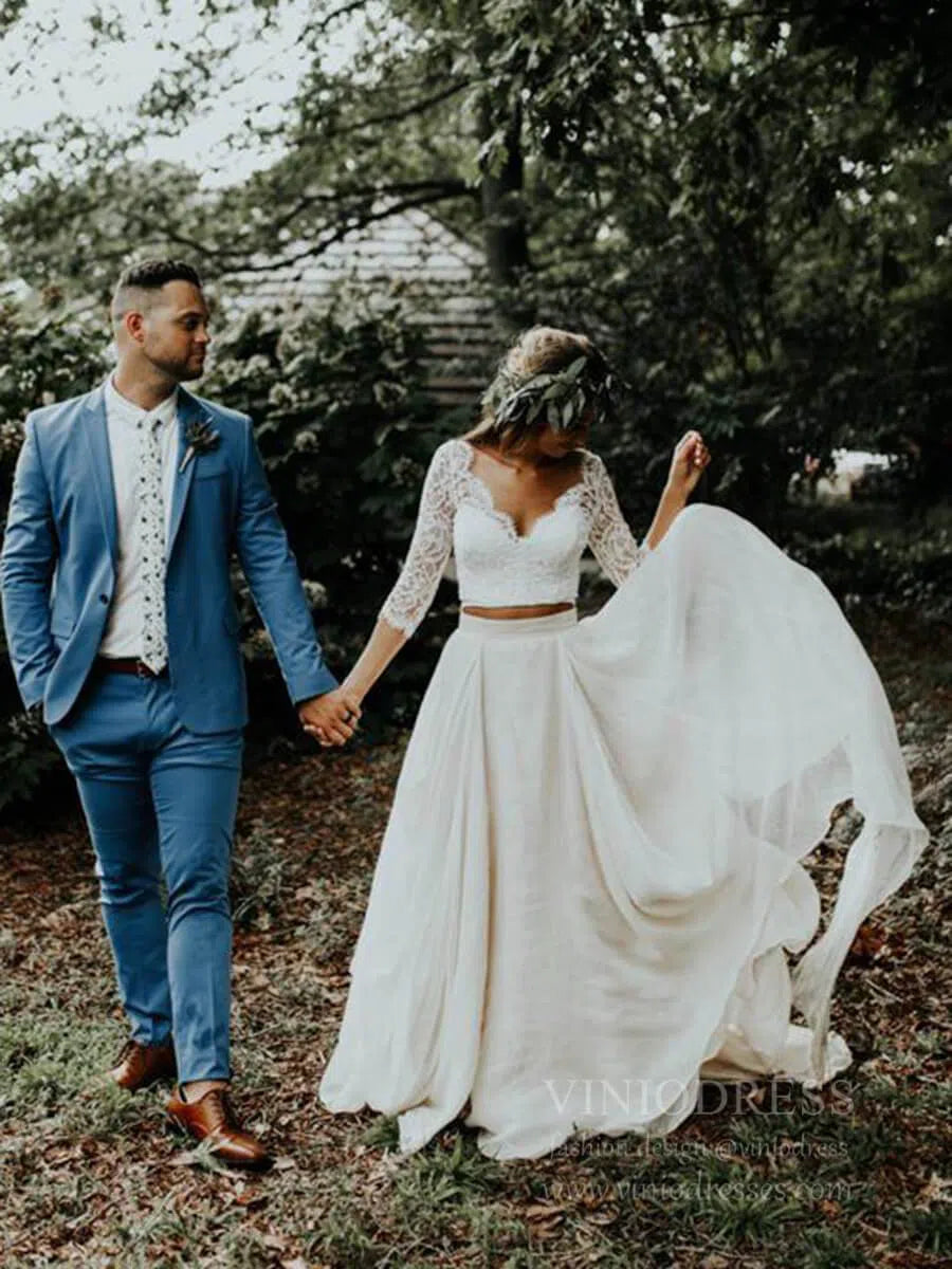 <transcy>Vestidos de novia rústicos baratos de dos piezas con mangas Viniodress VW1113</transcy>
