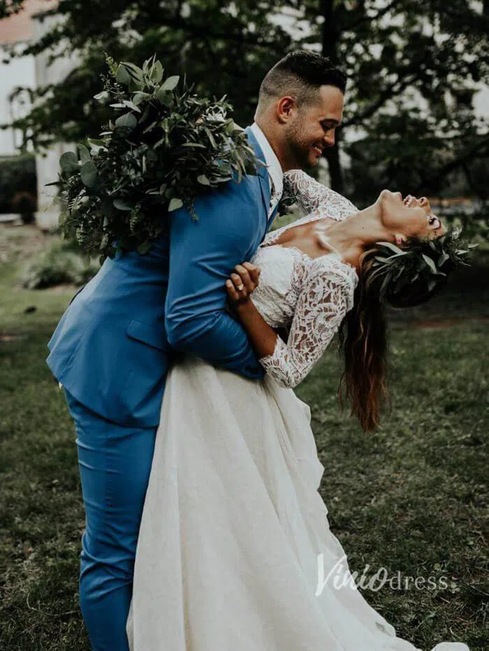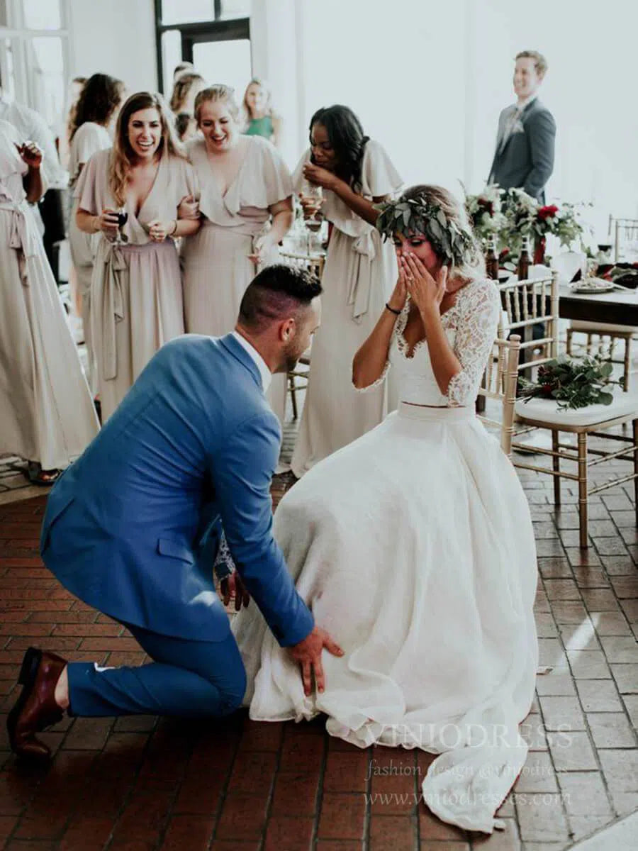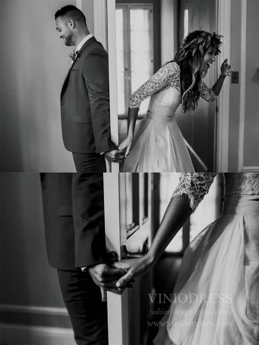 <transcy>Vestidos de novia rústicos baratos de dos piezas con mangas Viniodress VW1113</transcy>