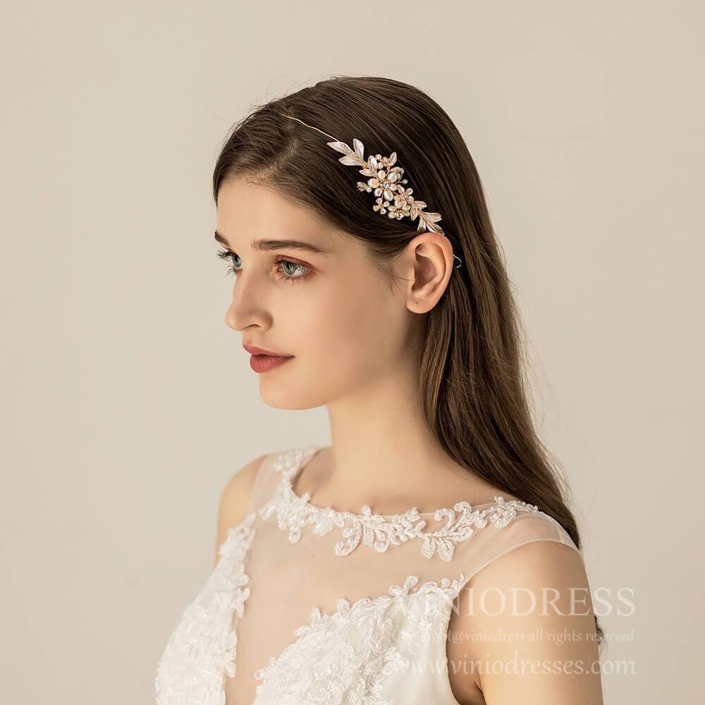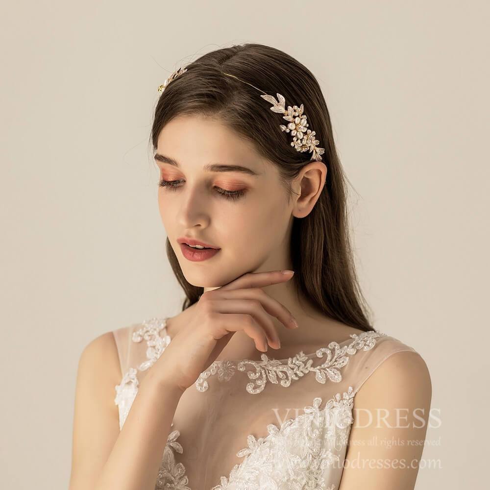 ¡Tocado de boda con tema rústico perfecto en oro claro!
