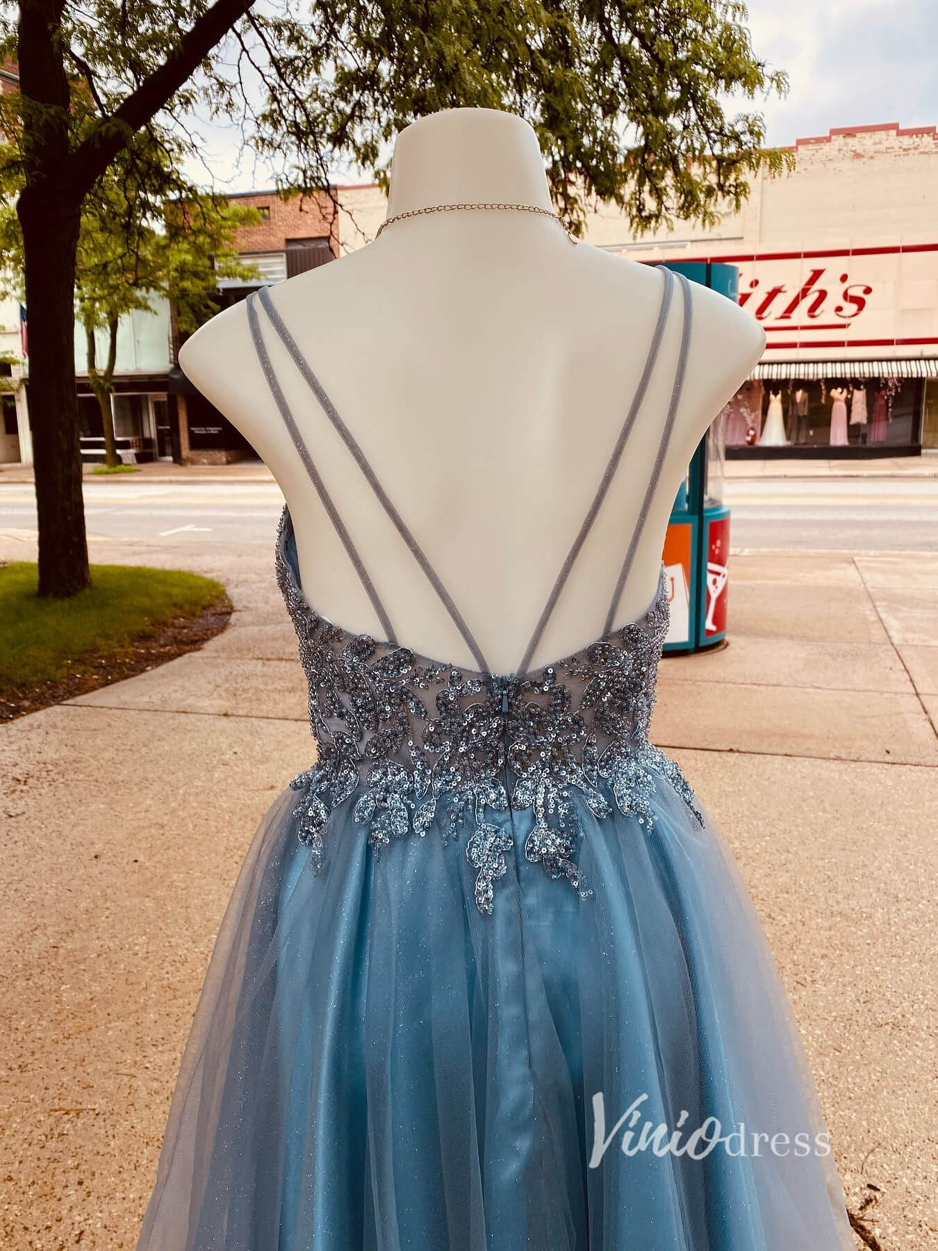 <transcy>Vestidos de fiesta azul claro Vestido de graduación con bordado floral SD1182</transcy>