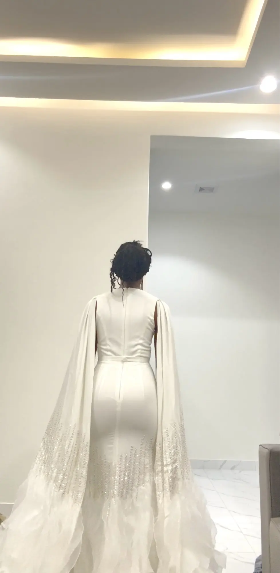 Confeccionado con maestría en satén de lujo, nuestro elegante vestido de novia con volantes y mangas extralargas luce un cuello barco e impresionantes detalles de cuentas. Las preciosas mangas extralargas y el bajo con volantes añaden un toque de elegancia y sofisticación. Perfecto para cualquier desfile u ocasión especial.