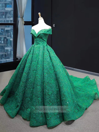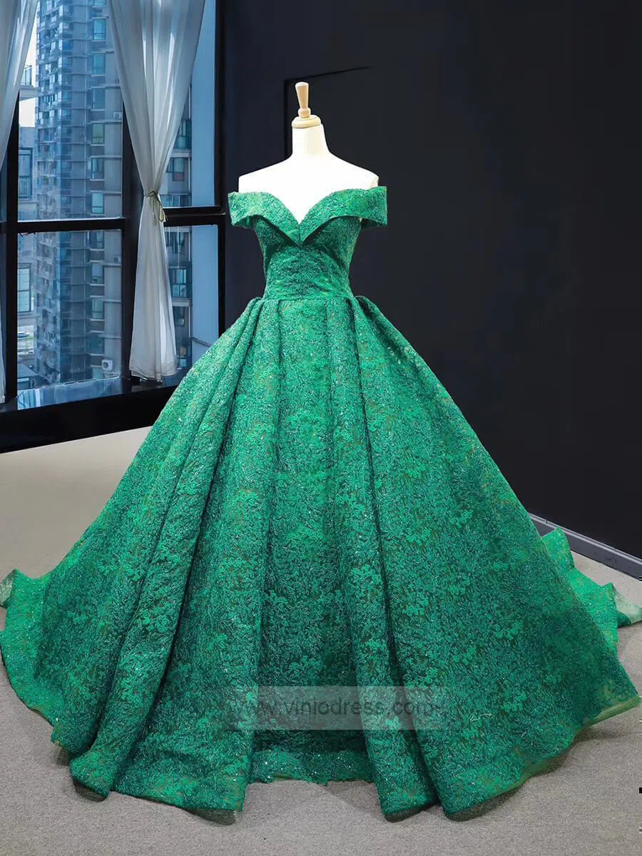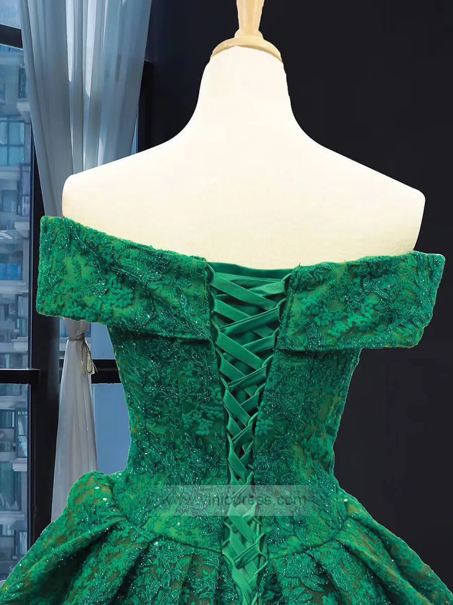 <transcy>Vestidos de fiesta de princesa de encaje verde esmeralda Vestidos de fiesta modestos FD1302</transcy>