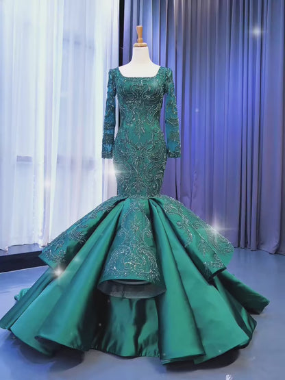 <transcy>Vestidos de fiesta de plumas rojas con hombros descubiertos Vestido de lentejuelas de manga larga FD2413</transcy>