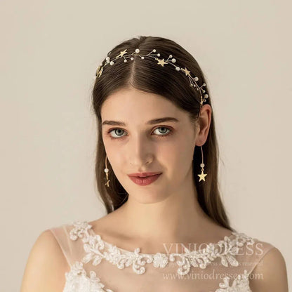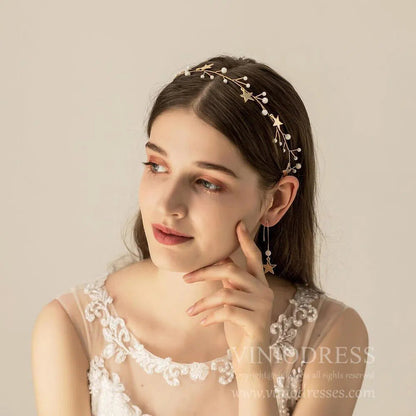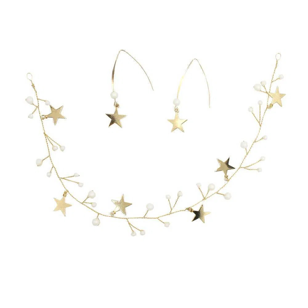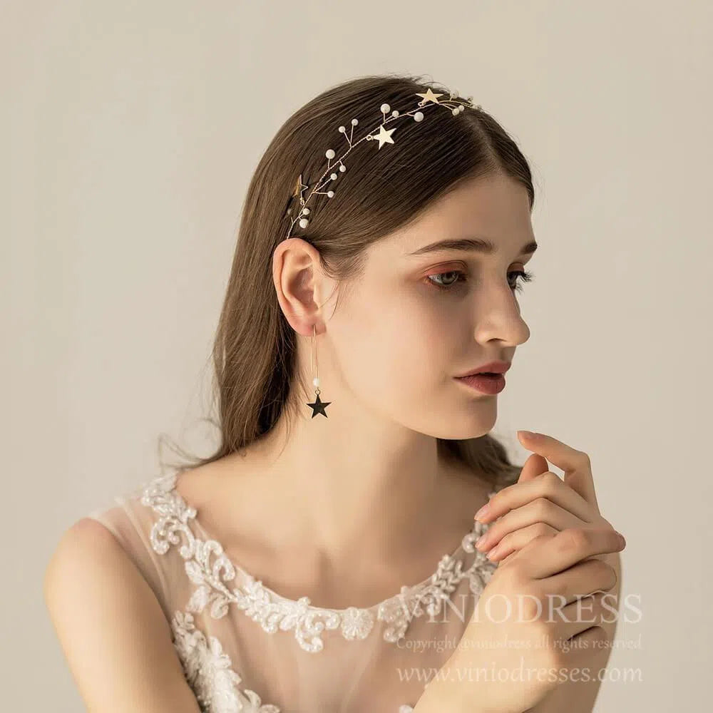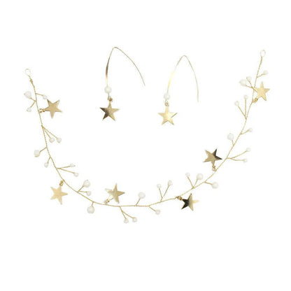 - Enredadera de pelo elegante con estrellas doradas y perlas