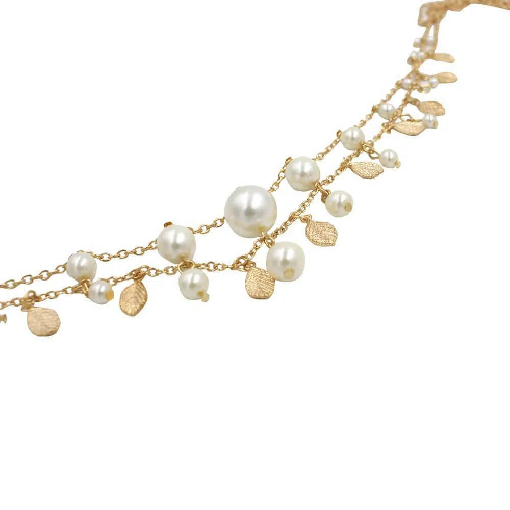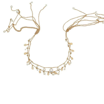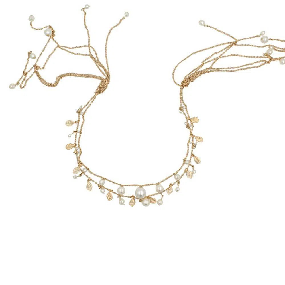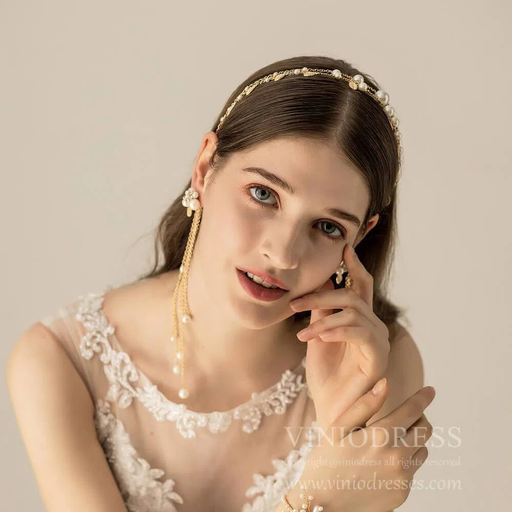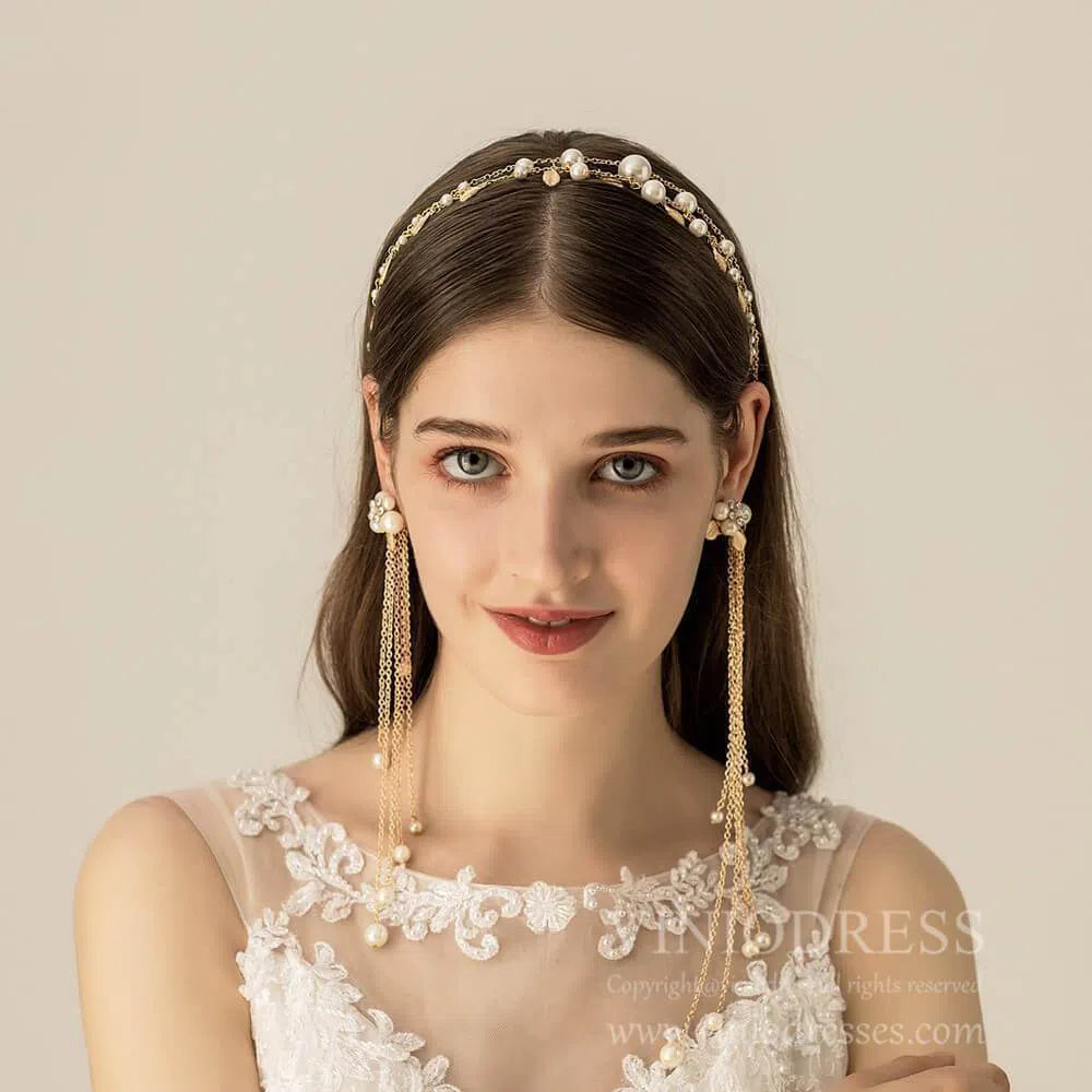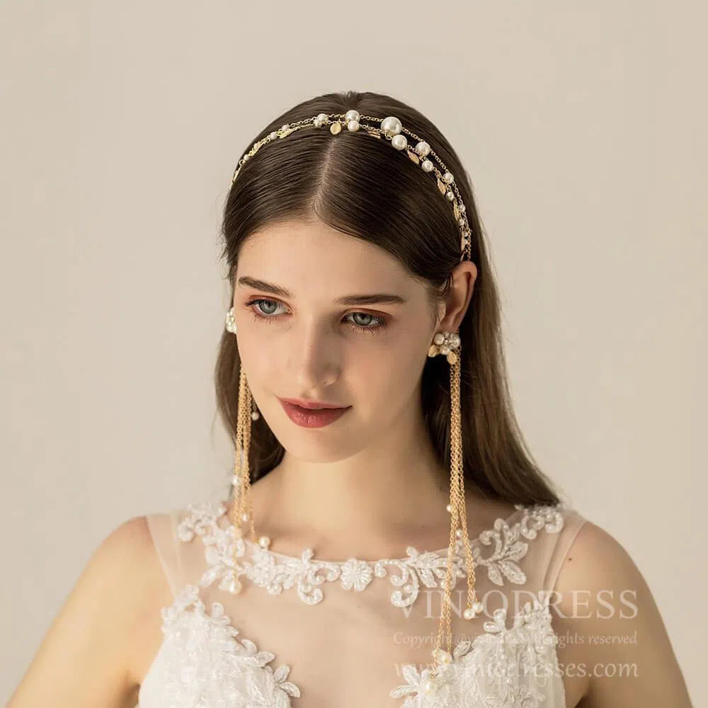 <transcy>Diadema de perlas doradas con cordones en cascada AC1104</transcy>