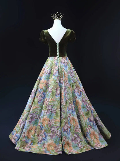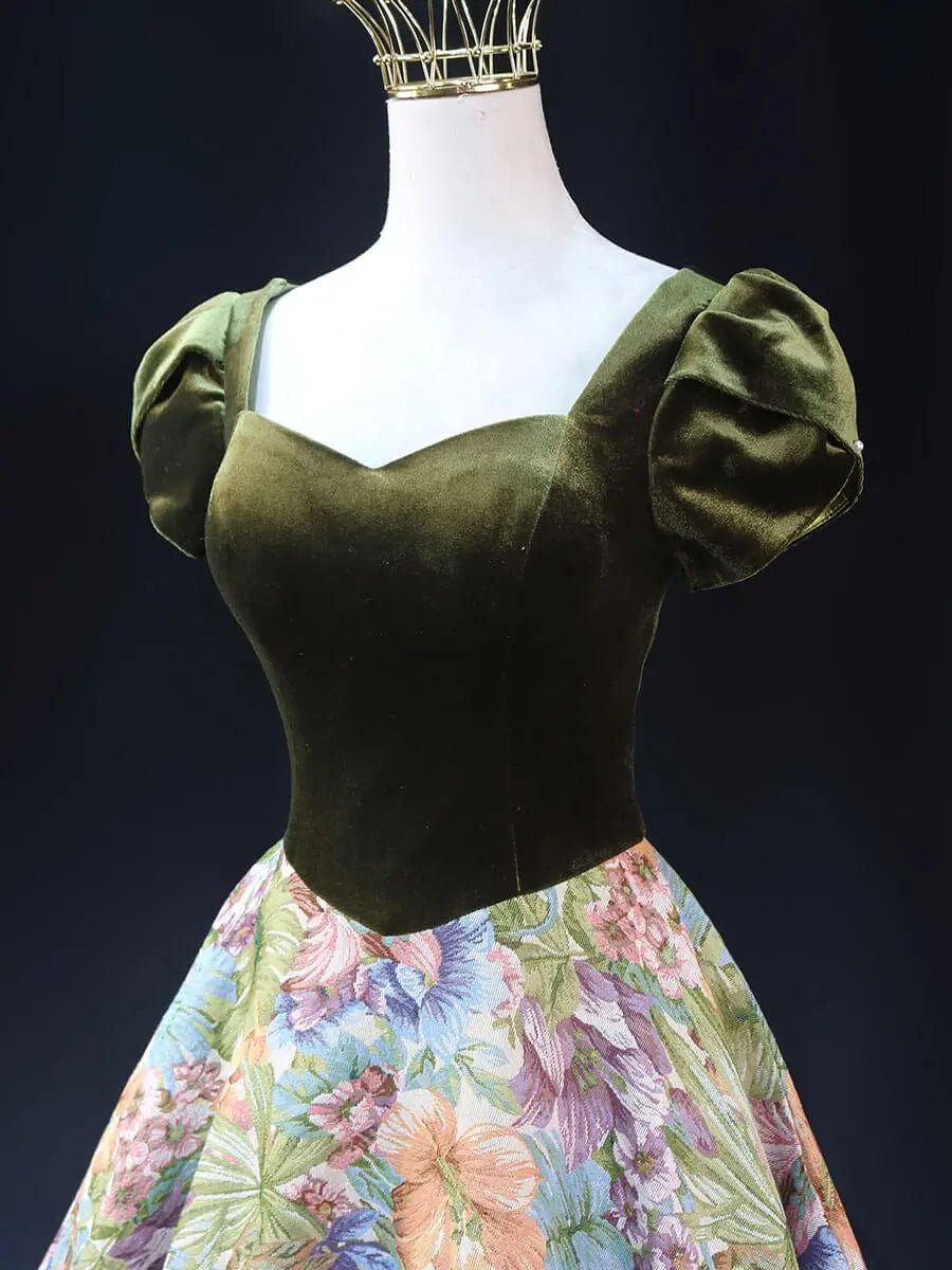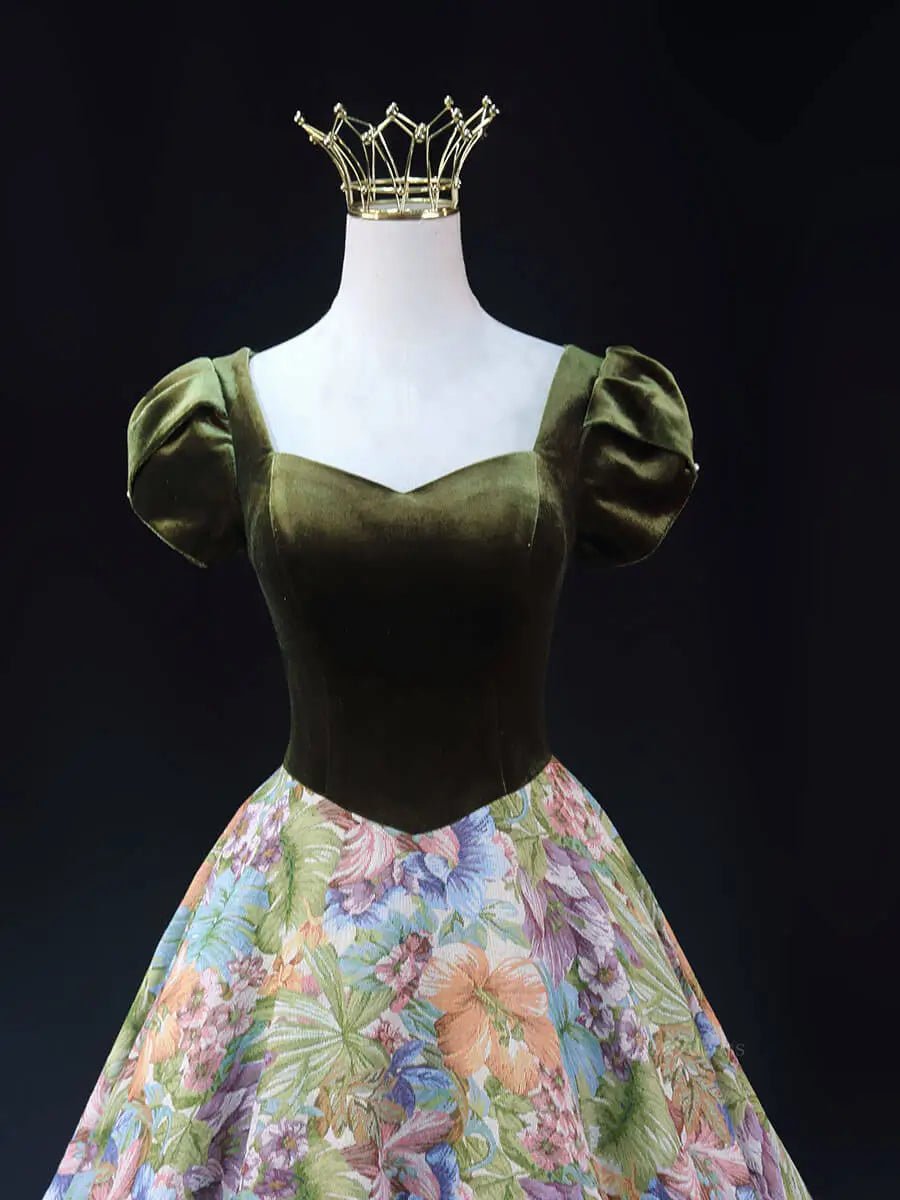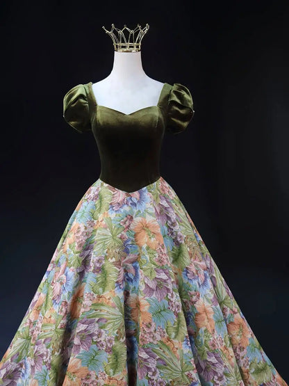 Confeccionado con maestría para brindar elegancia y comodidad, este vestido de fiesta verde de jacquard presenta un lujoso corpiño de terciopelo y mangas abullonadas que le aportan un toque de glamour. La espalda tipo corsé proporciona un ajuste perfecto, mientras que el delicado jacquard le aporta textura y profundidad. Perfecto para fiestas de graduación o quinceañeras.