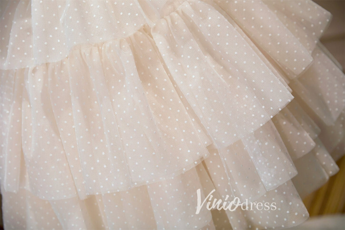 Vestidos de graduación con volantes y lunares, tirantes finos y capas SD1538