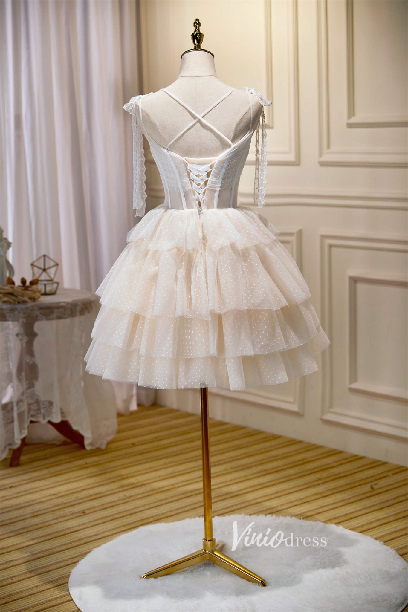 Vestido corto hoco de tul.