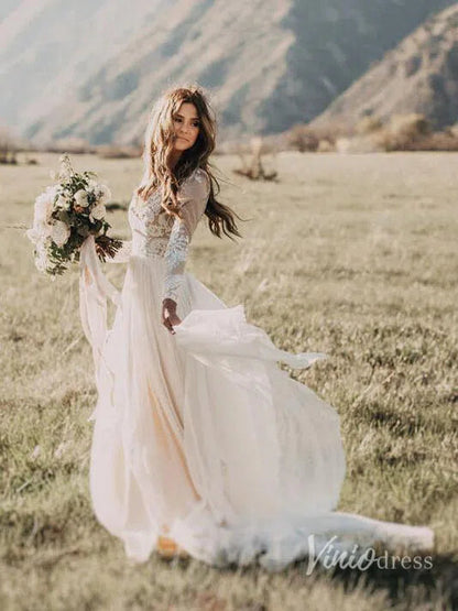 <transcy>Vestidos de novia bohemios de manga larga Vestido de novia rústico rústico Viniodress VW1111</transcy>