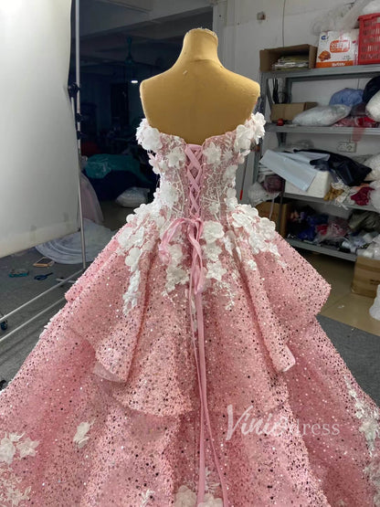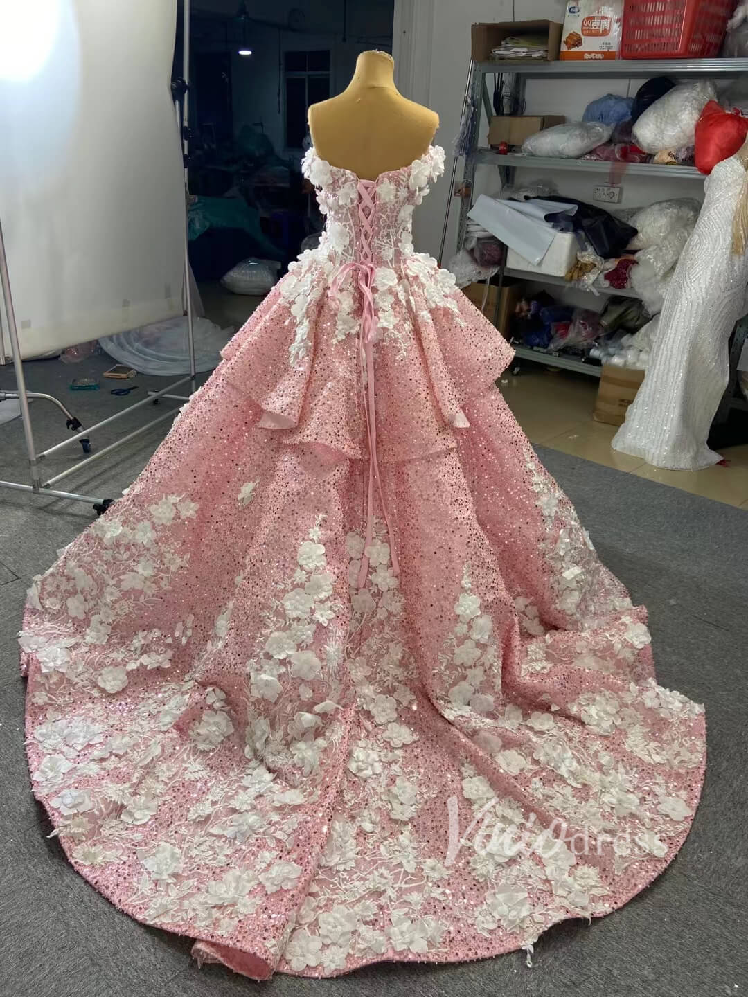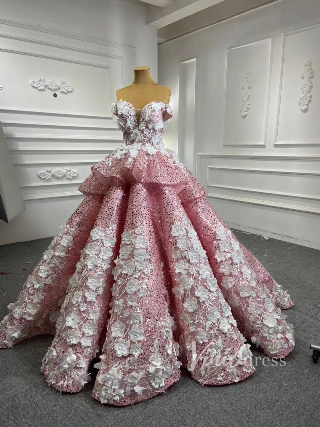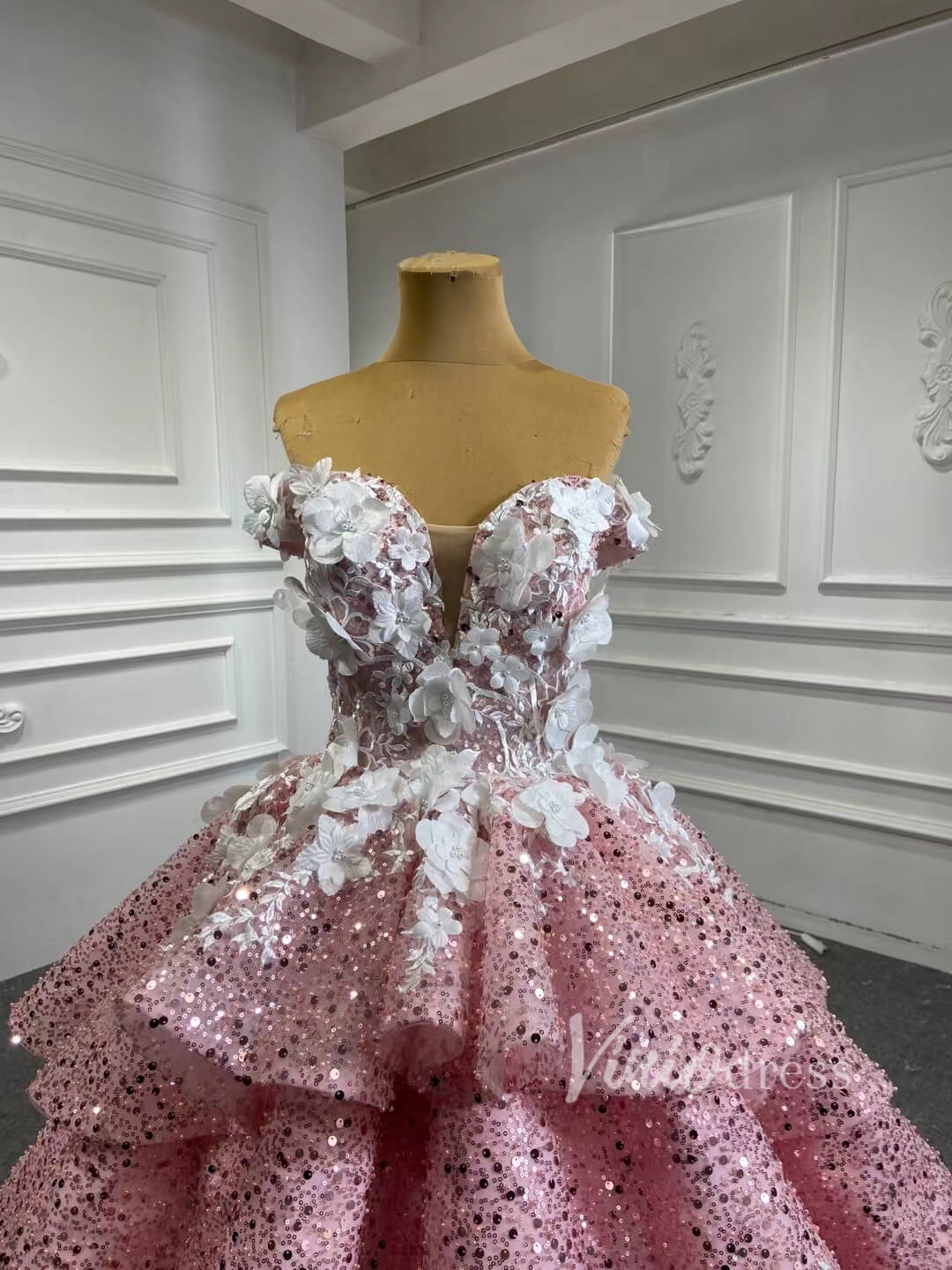 Vestido retro azul claro Sweet 15 con apliques de flores 3D hechos a mano
