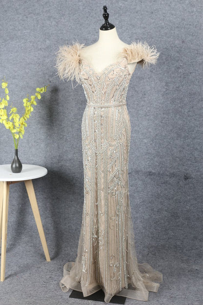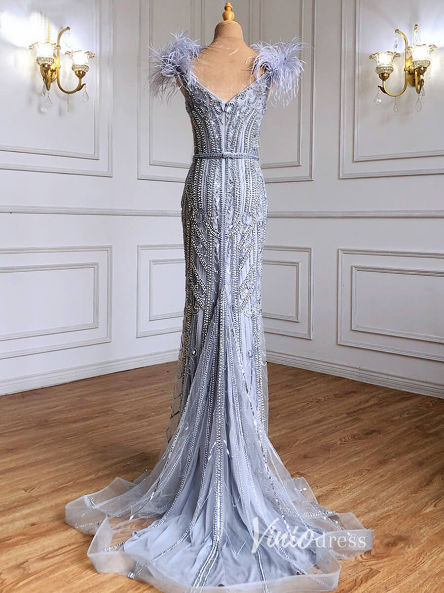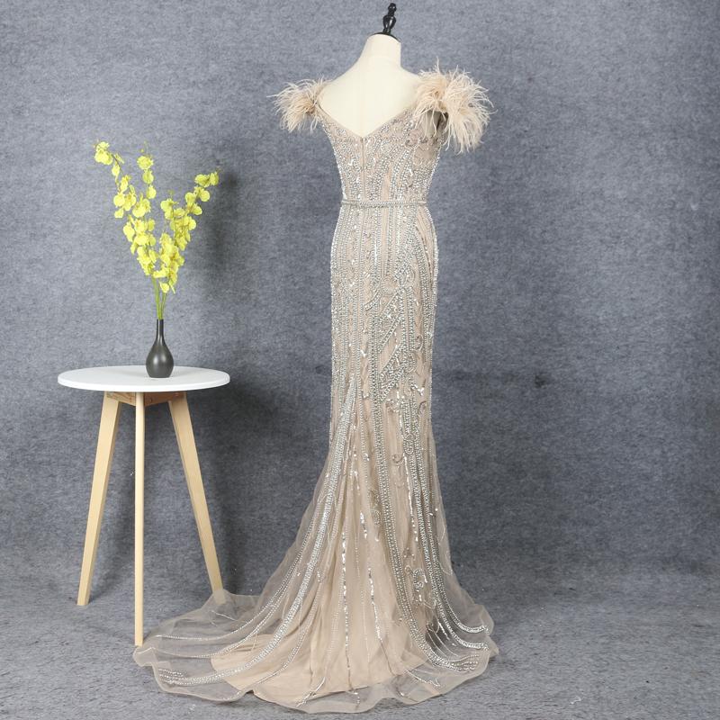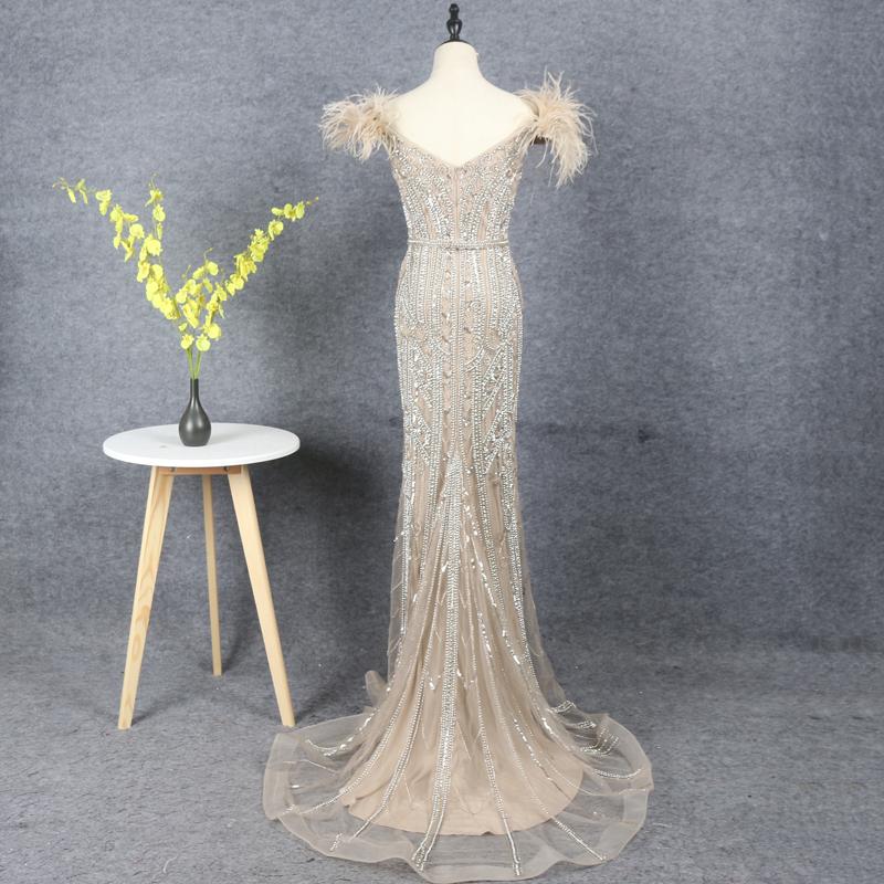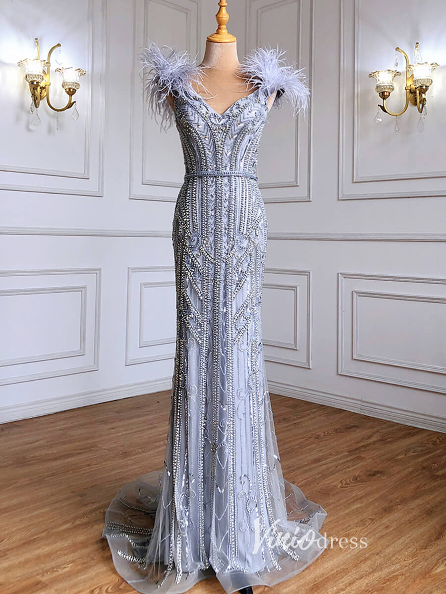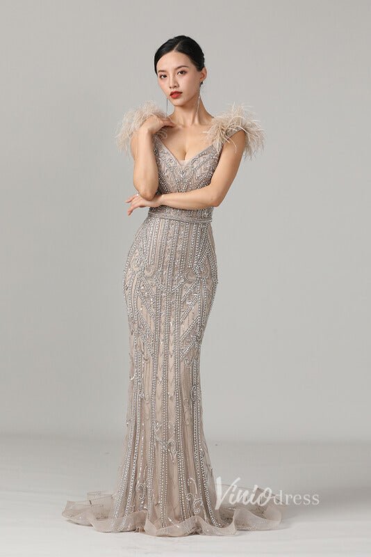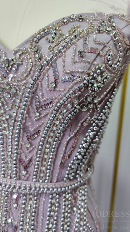 Vestido de fiesta de los años 20, color malva, con cuentas y plumas, sin hombros, FD2615