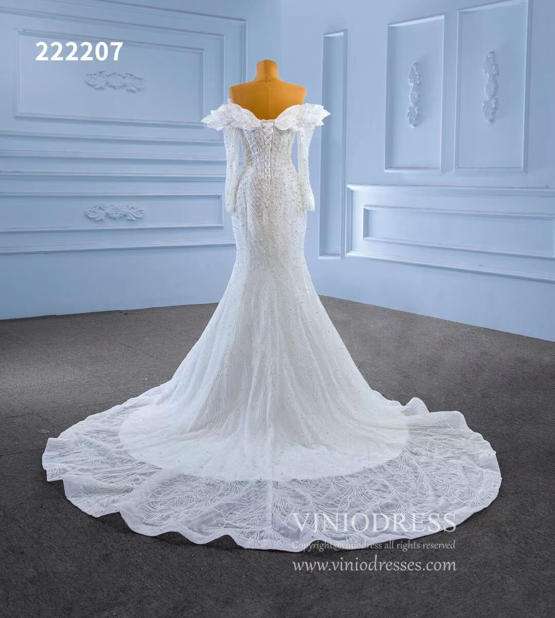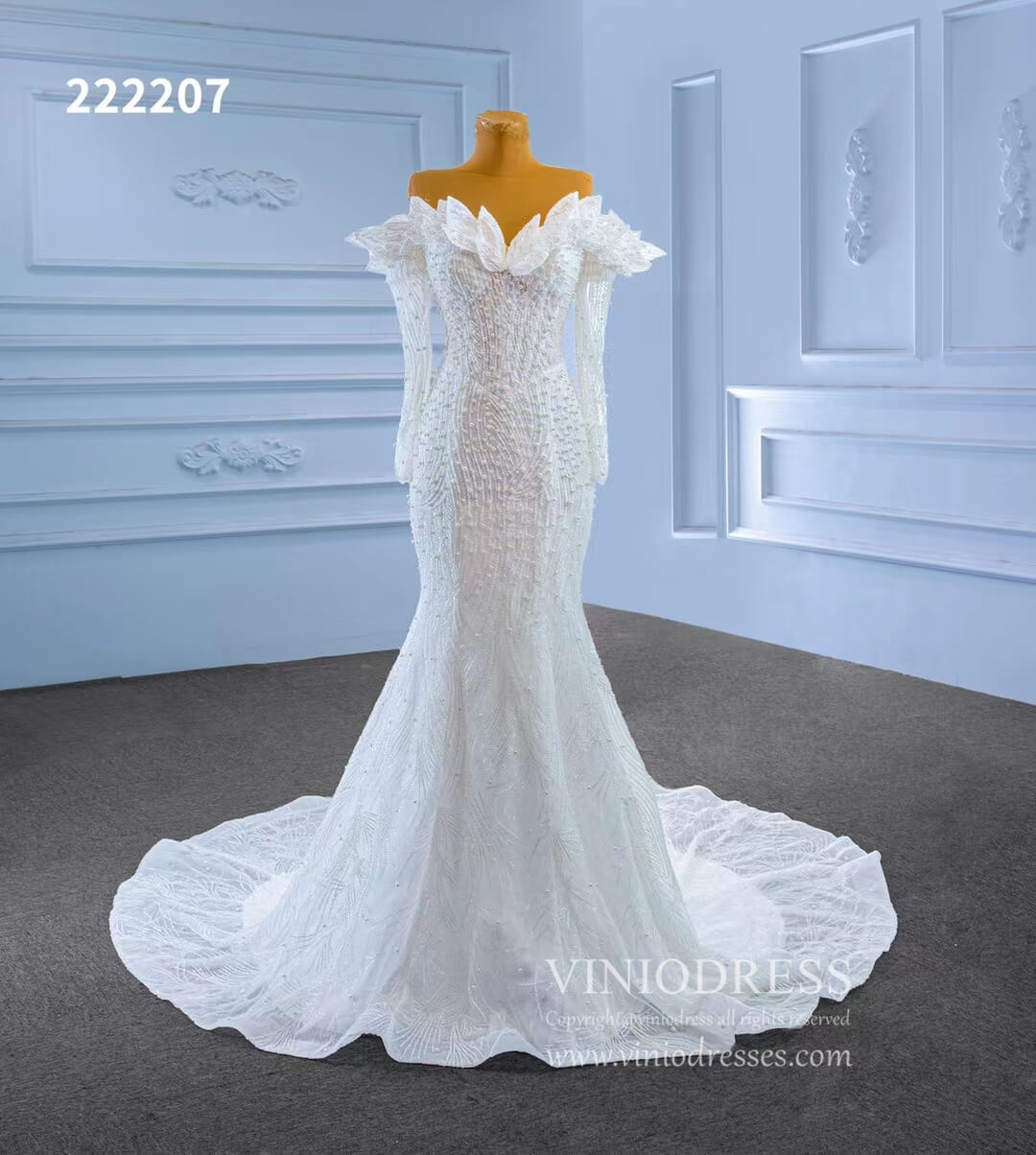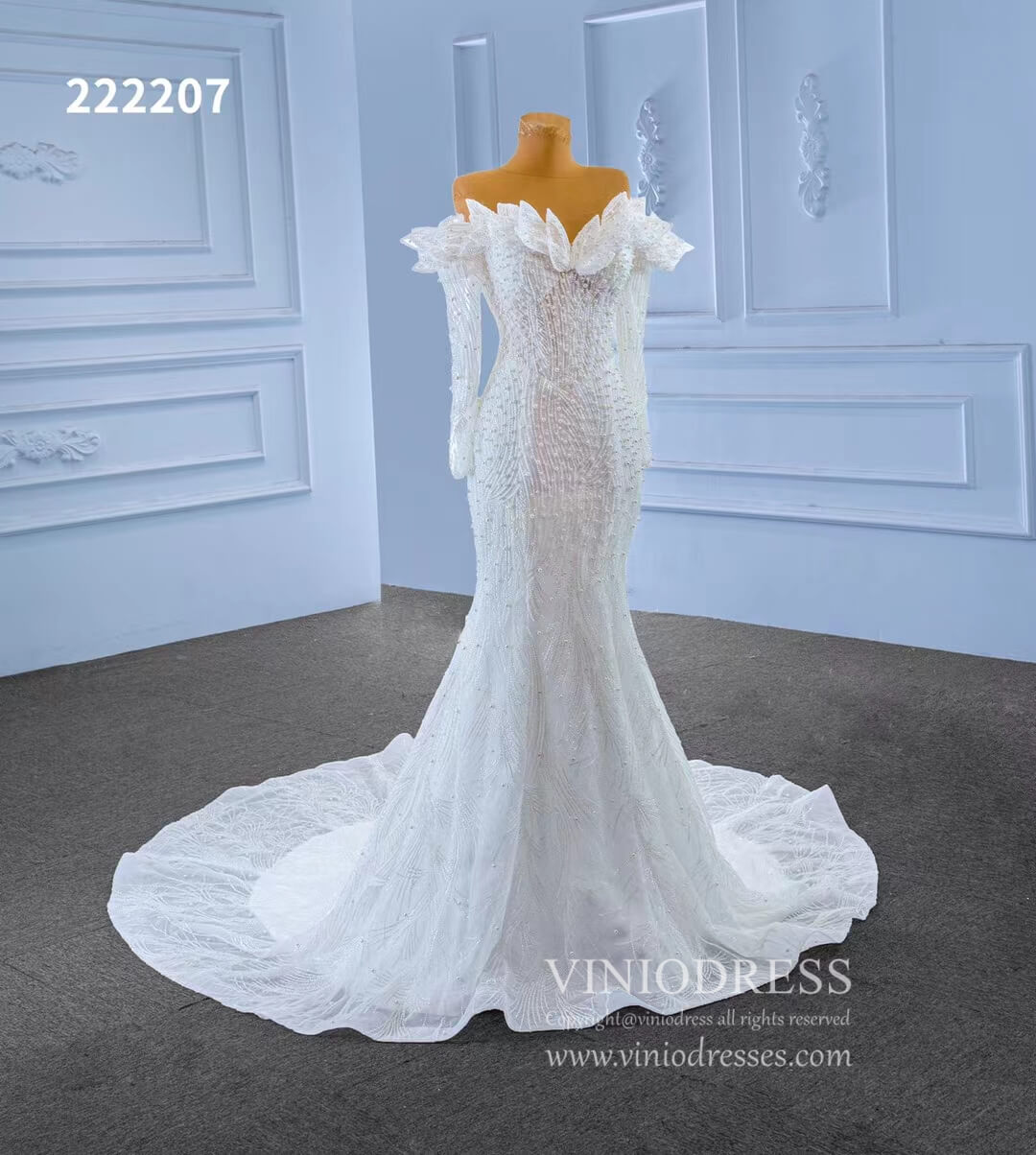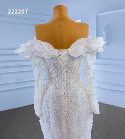 Vestidos de novia de sirena con hombros descubiertos y mangas largas 222207