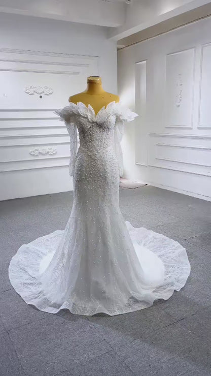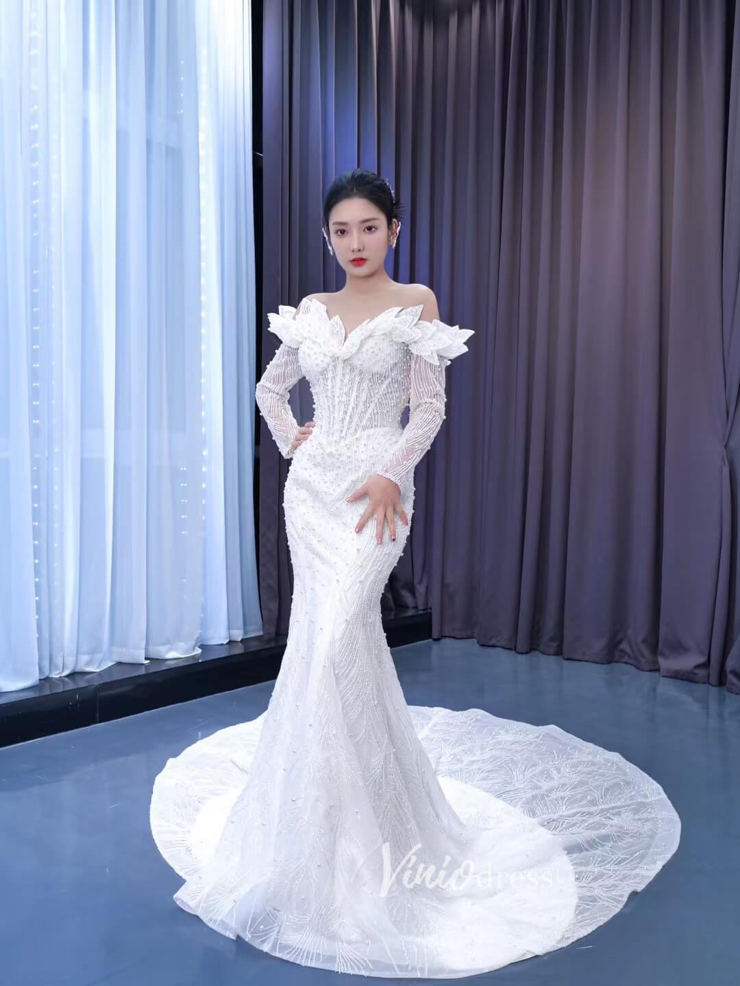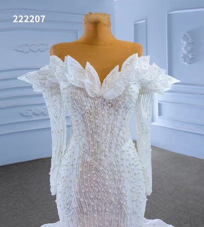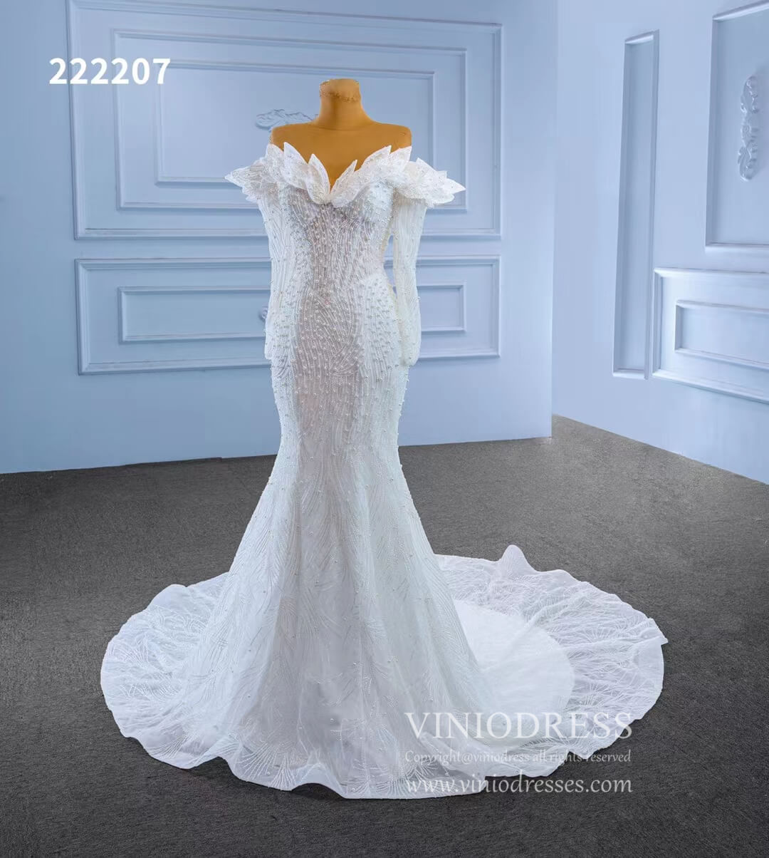 Vestidos de novia de sirena con hombros descubiertos y mangas largas 222207