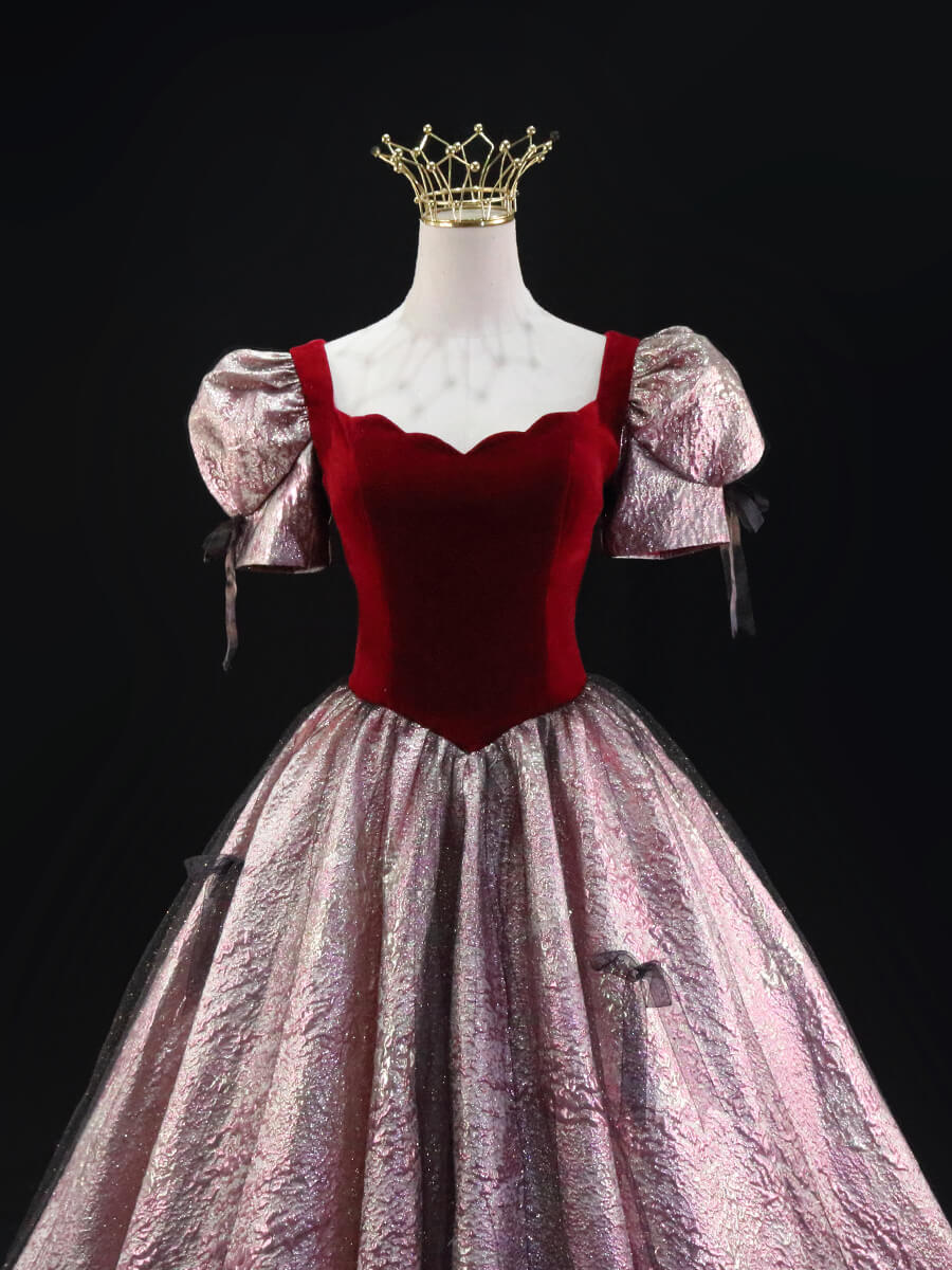 ¡Destaca con nuestros vestidos de fiesta de jacquard rosa! Las elegantes mangas abullonadas y el corpiño de terciopelo rojo le dan un toque sofisticado, mientras que la parte inferior de jacquard rosa le da un toque divertido y coqueto. Perfecto para quinceañeras o cualquier ocasión especial, este vestido te hará destacar y te hará sentir como una princesa.