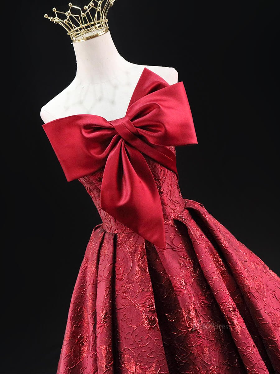 ¡Transpórtate a un cuento de hadas con nuestros impresionantes vestidos de fiesta de jacquard rojo! El diseño sin tirantes rebosa elegancia, mientras que el corpiño con lazo le da un toque de fantasía. La espalda tipo corsé garantiza un ajuste perfecto mientras bailas toda la noche. ¡Destaca entre la multitud de vestidos con esta atrevida y hermosa opción!