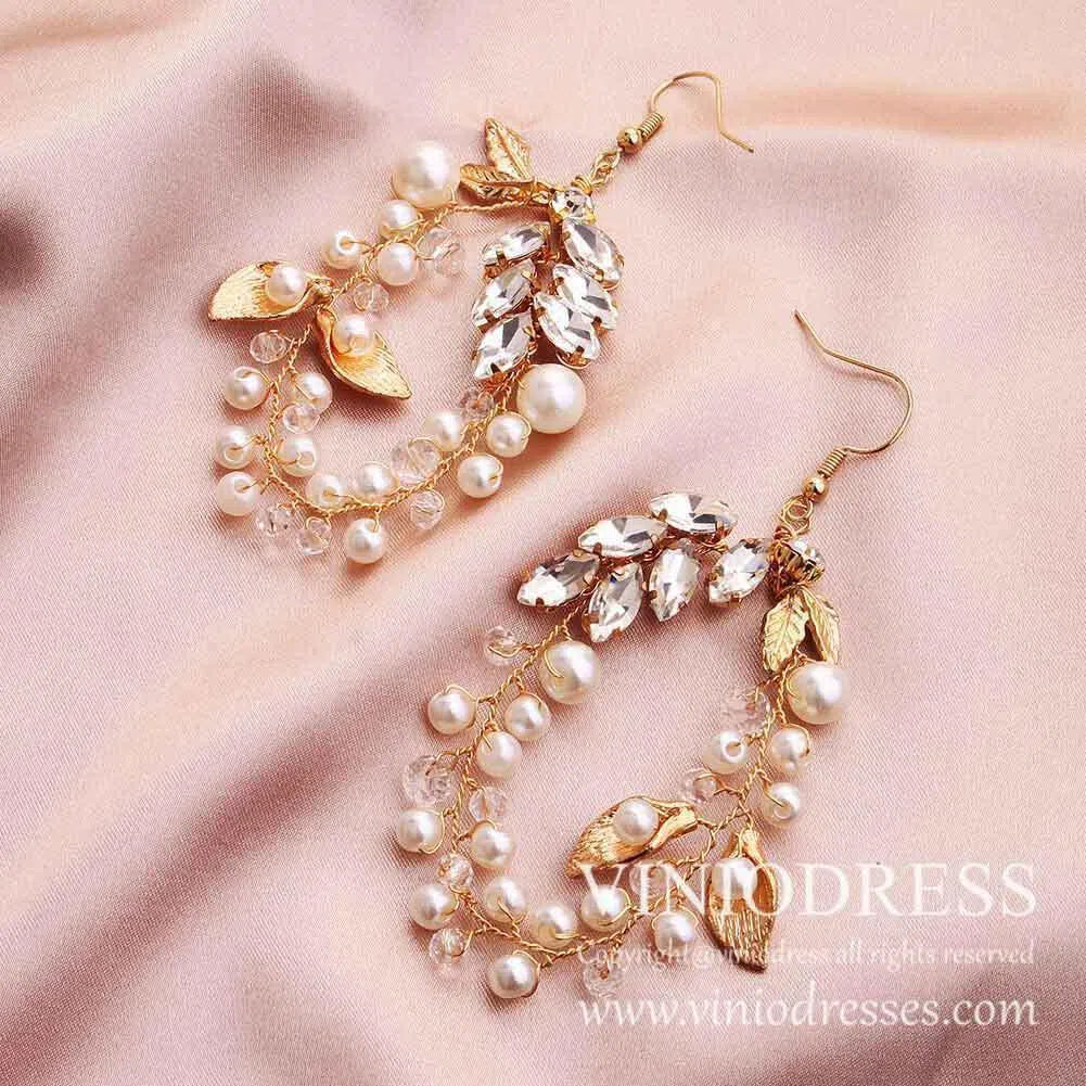- Pendientes colgantes de pan de oro con perlas y cristales