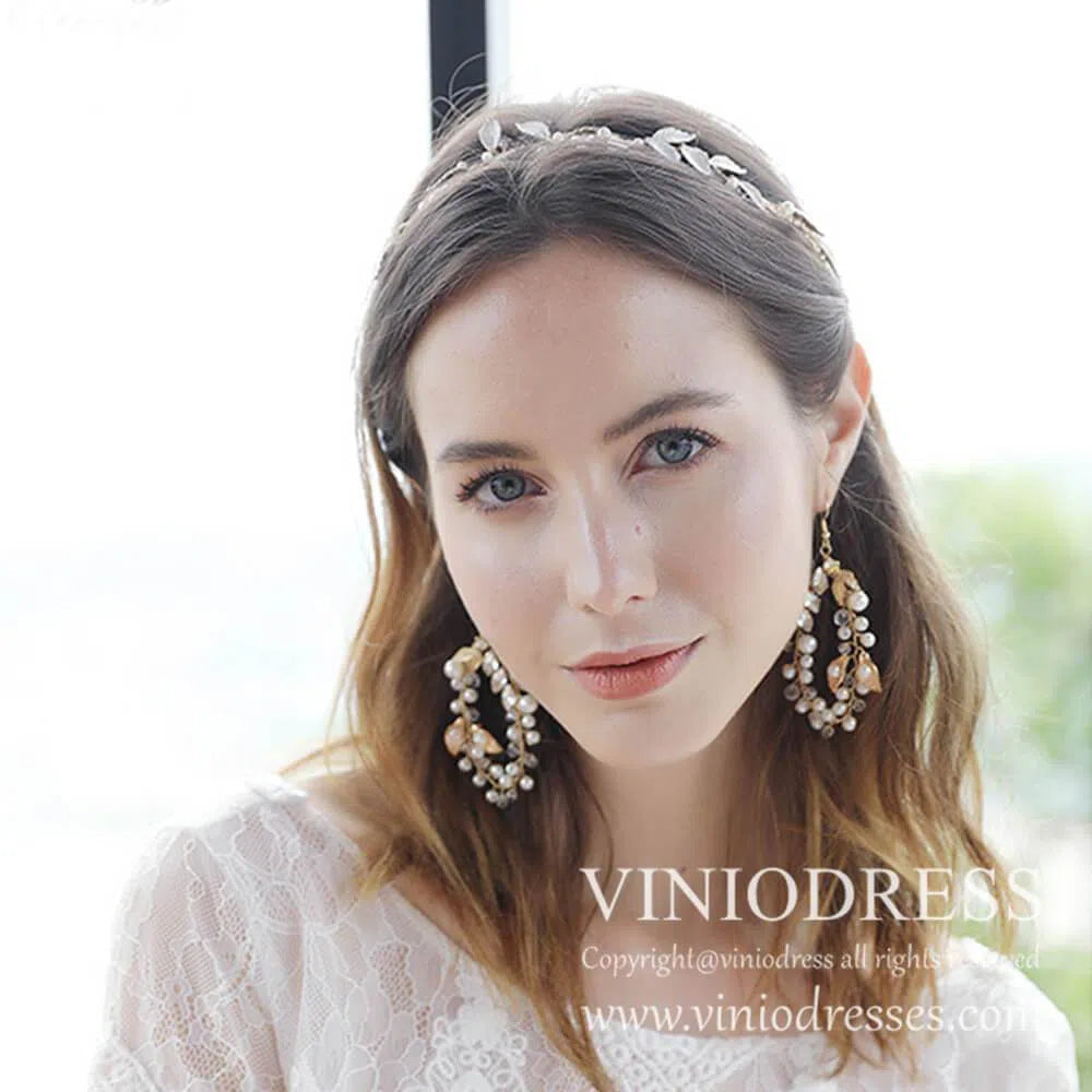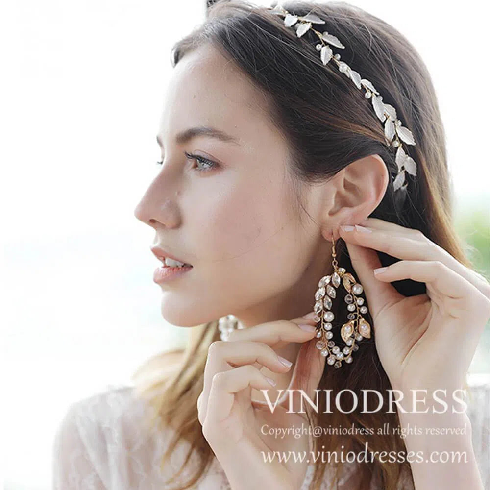 <transcy>Conjunto de diadema y aretes de novia de hoja de laurel AC1049</transcy>