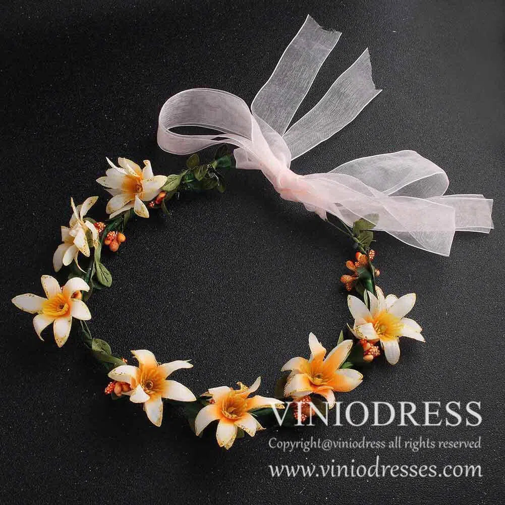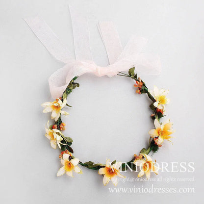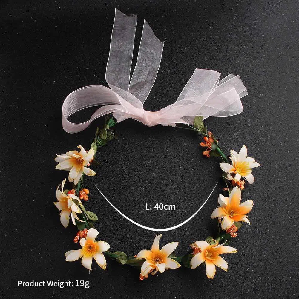 <transcy>Diadema de corona de flores amarillas con lazo de cinta rosa AC1050</transcy>