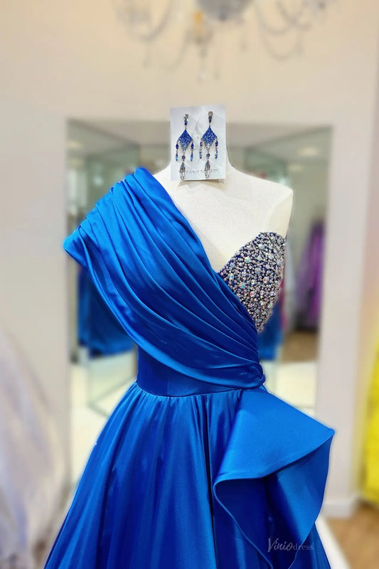 Robe de bal bleu royal brillant, robe formelle à épaules dénudées 66530