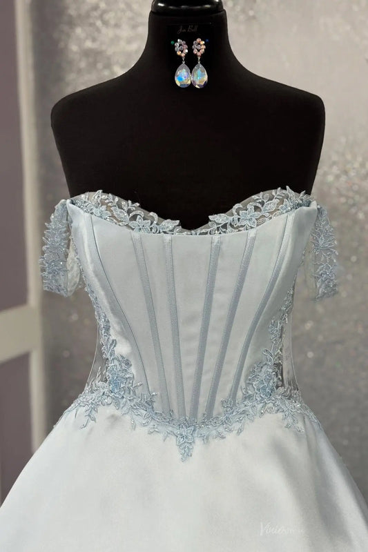 Robes de bal bleu clair à épaules dénudées avec poches FD1573