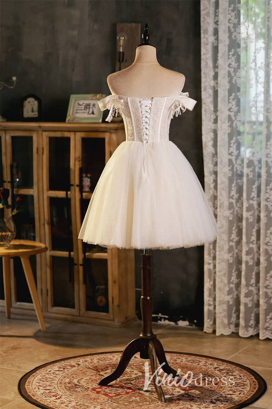 Robes de soirée ivoire à épaules dénudées, longueur genou, robe de bal SD1275